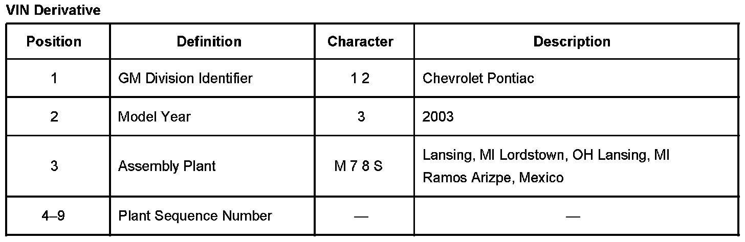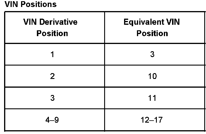 All engines and transmissions are stamped or laser etched with a partial vehicle identification number (VIN), which was derived from the complete VIN. A VIN derivative contains the following nine positions.