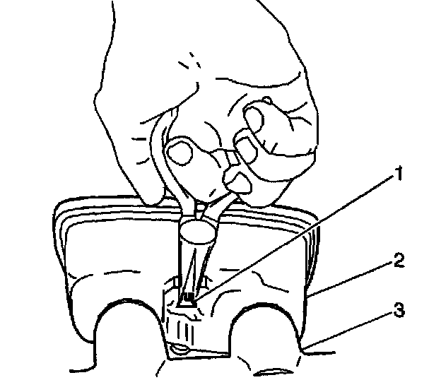 1. Install the Brake Fluid Level sensor into the master cylinder reservoir (2) until the locking tabs (1) snap into place.