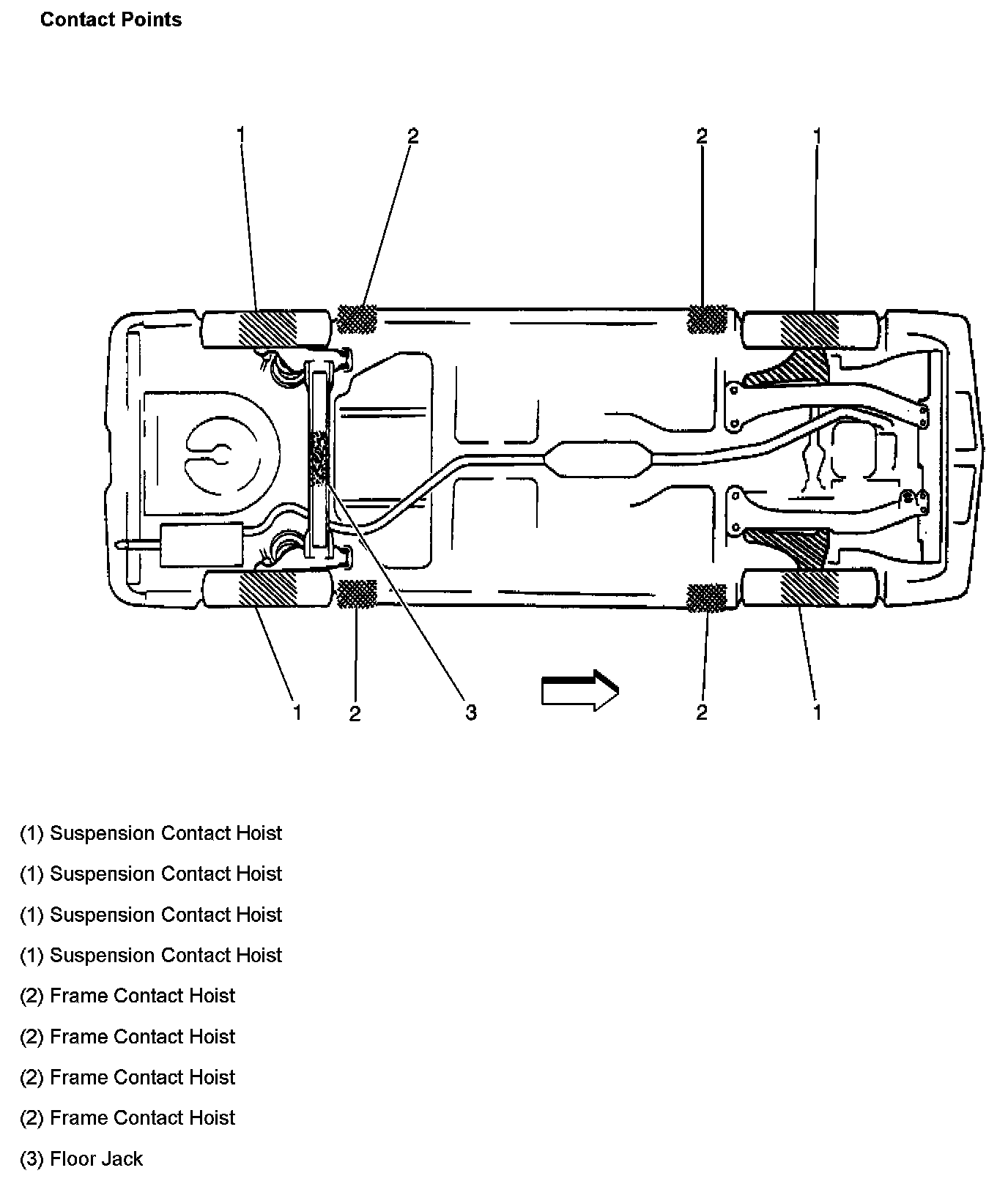 - To avoid any vehicle damage, serious personal injury or death when major components are removed from the vehicle and the vehicle is supported by a hoist, support the vehicle with jack stands at the opposite end from which the components are being removed.