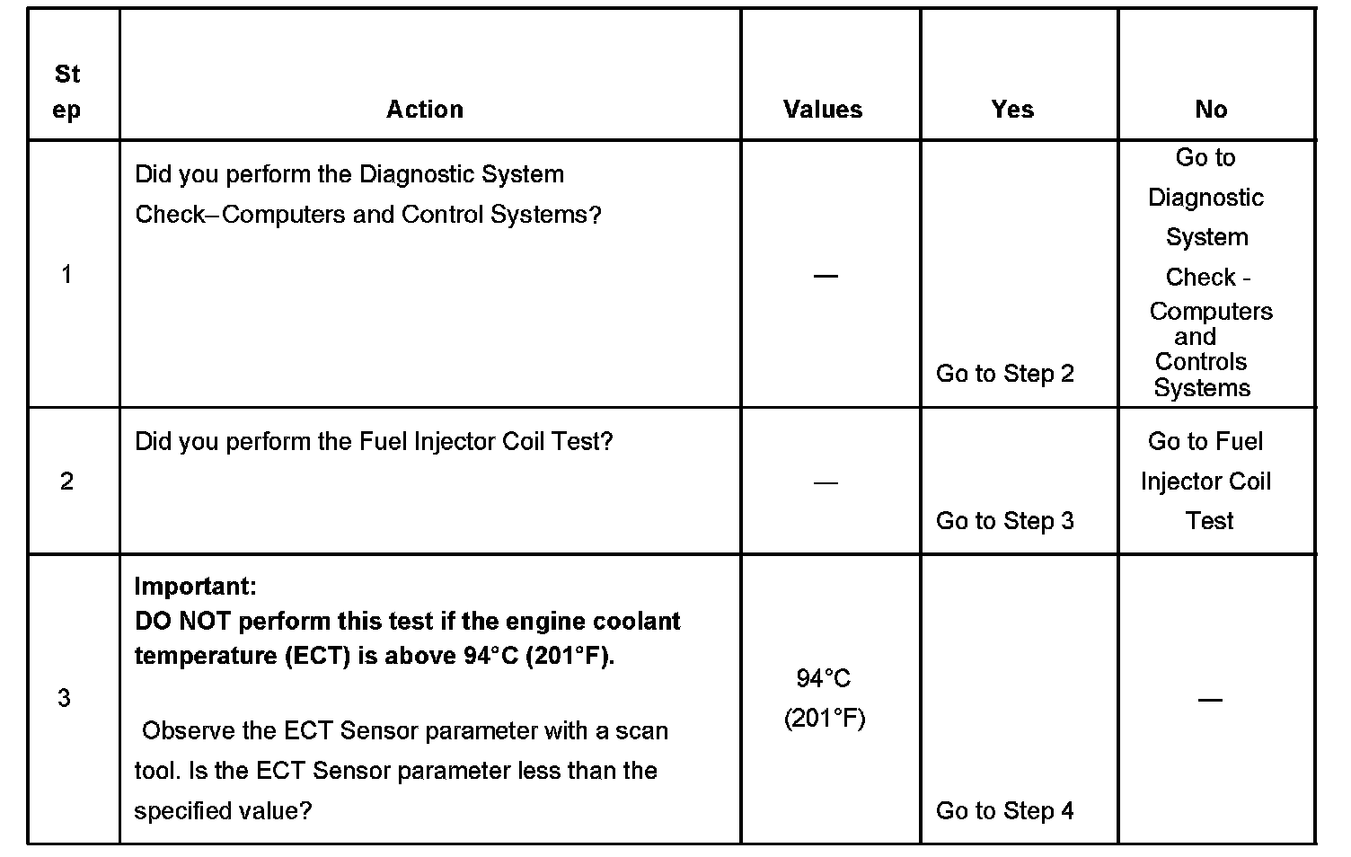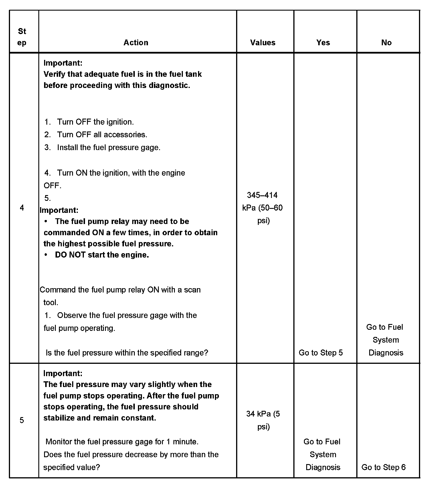 3. The engine coolant temperature (ECT) must be below the operating temperature in order to avoid irregular fuel pressure readings due to hot soak fuel boiling.