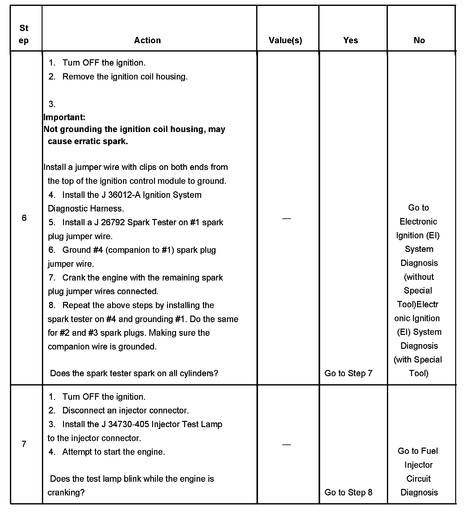 The Engine Cranks but Does Not Run diagnostic table assumes the following: