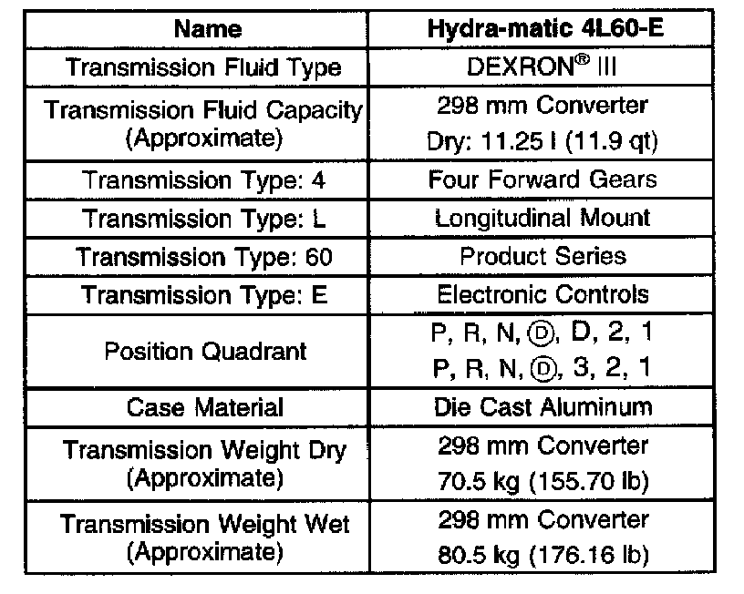 Transmission General Specifications Part 2 Of 2: