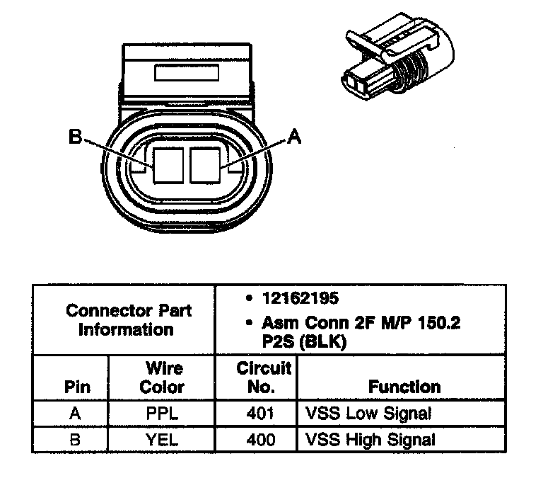Vehicle Speed Sensor Assembly Connector, Wiring Harness Side: