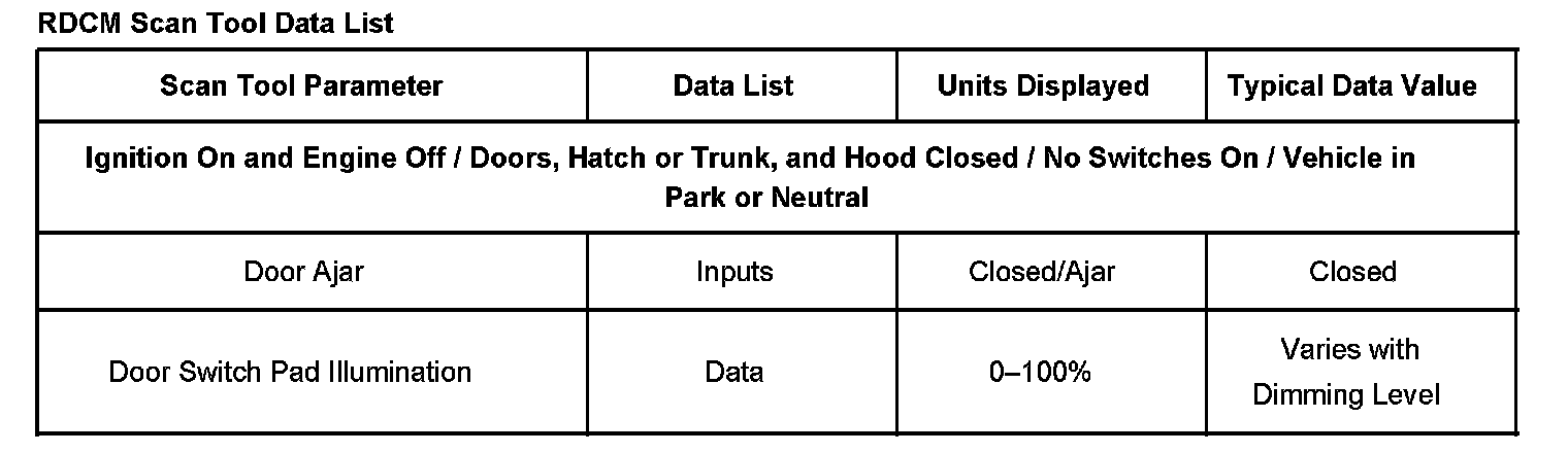 RDCM Scan Tool Data List: