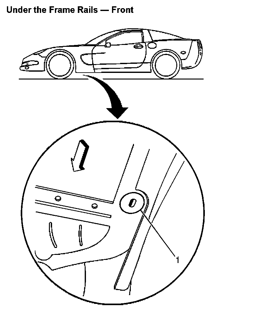 - Make sure the jack lift pad spans at least 2 suspension crossmember ribs (1).
