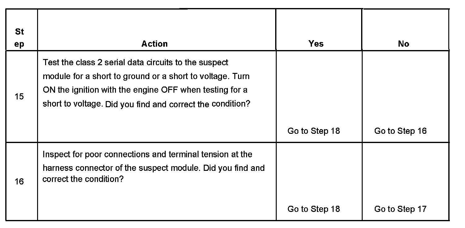 2. A partial loss of communication in the class 2 serial data circuit uses a different procedure than a total loss of communication of the class 2 serial data circuit.
