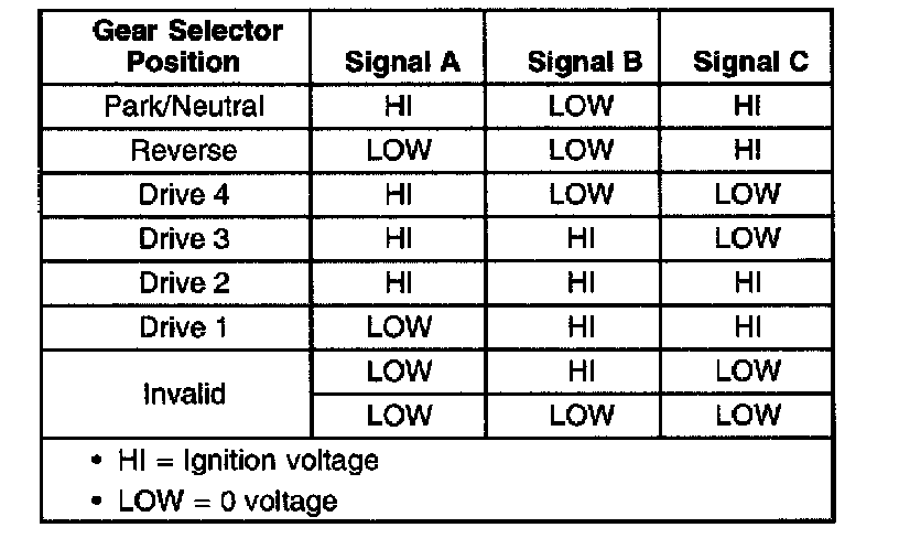 Transmission Fluid Pressure Manual Valve Position Switch Logic: