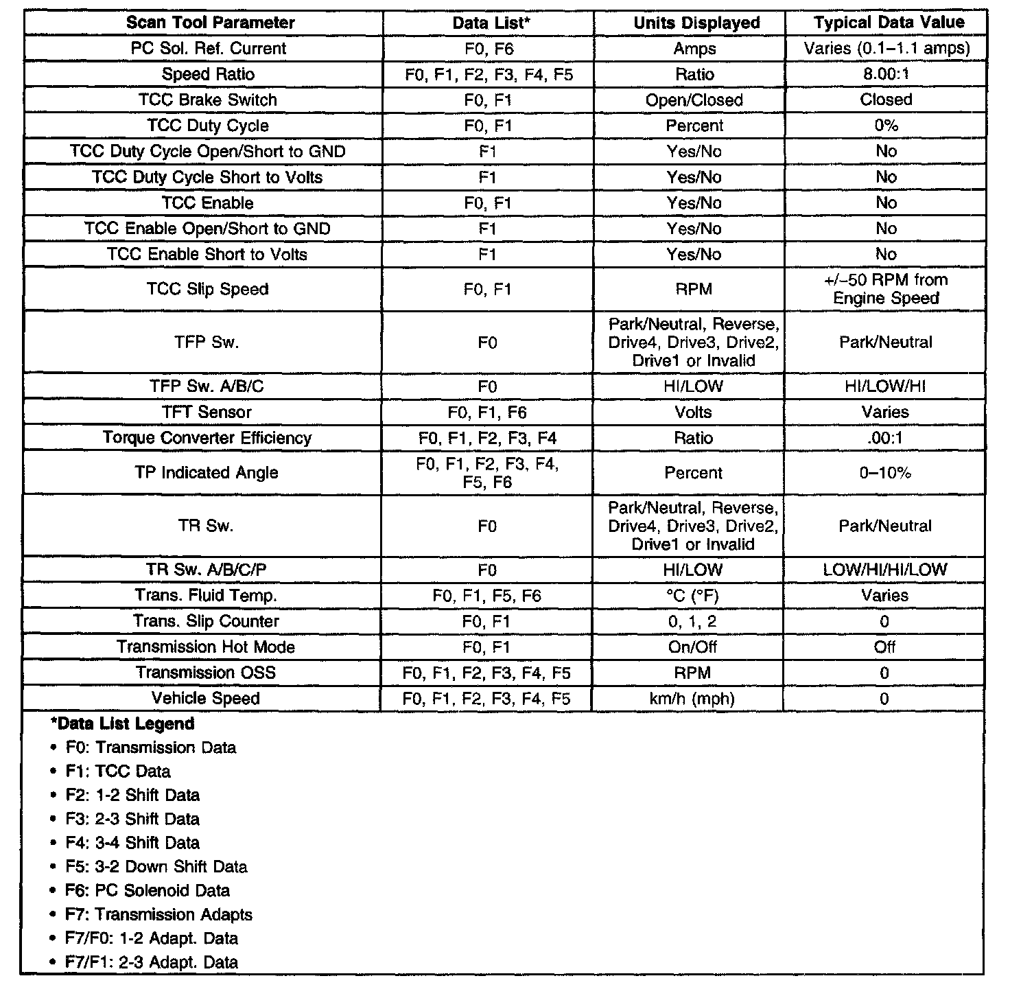 Transmission Scan Tool Data List Part 2 Of 2: