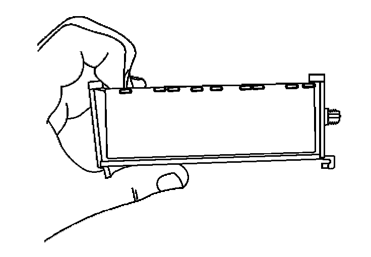 10.4. On bottom side of plastic bracket assembly, directly below the 2 large, plastic snap features, locate the under cut edge. Pull this under cut edge outward, up and over the side of the module.
