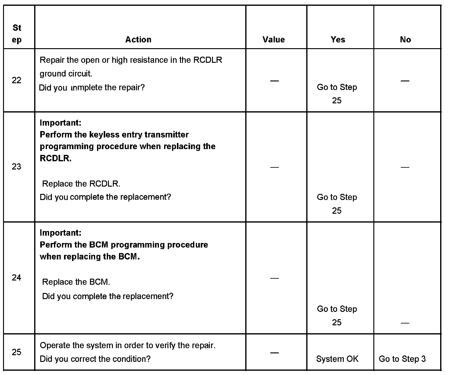KEYLESS ENTRY SYSTEM INOPERATIVETEST DESCRIPTION