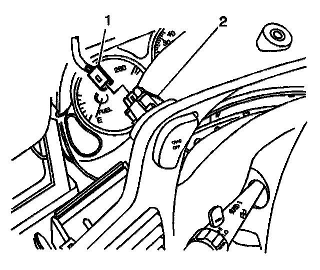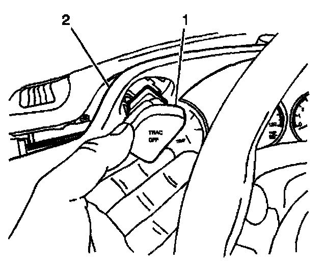 1. Install the traction control switch (1) to the IP cluster trim plate (2).