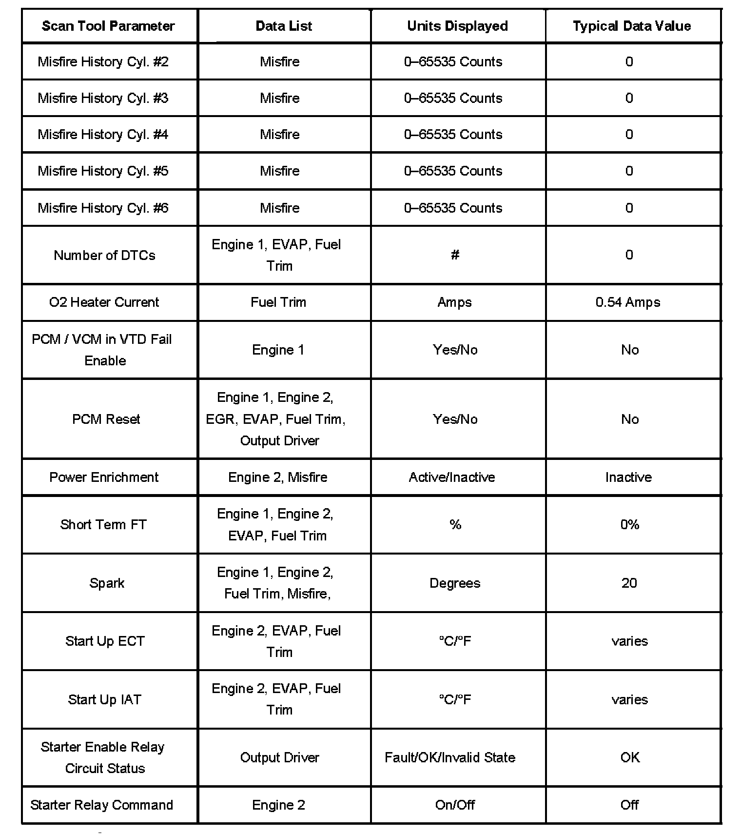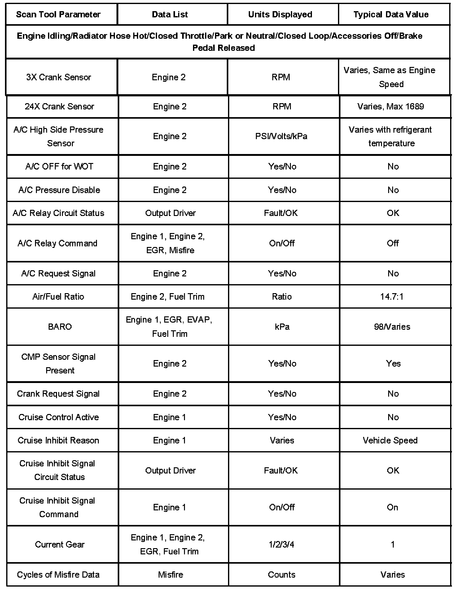 For scan tool parameter definitions, refer to Scan Tool Data Definitions. Scan Tool Data, Normal Values and Definitions