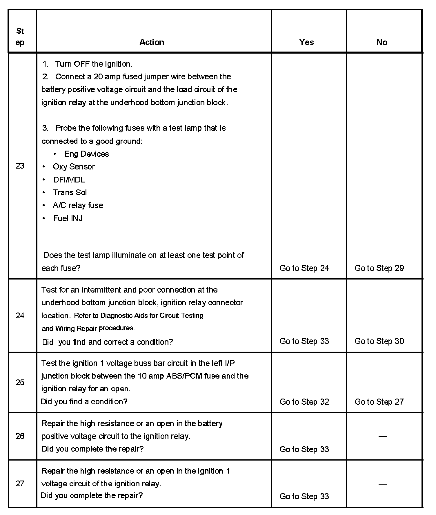 The ignition relay table assumes that the vehicle battery is fully charged.