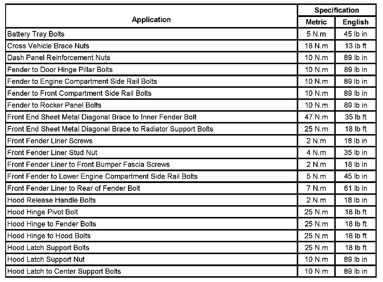 Fastener Tightening Specifications