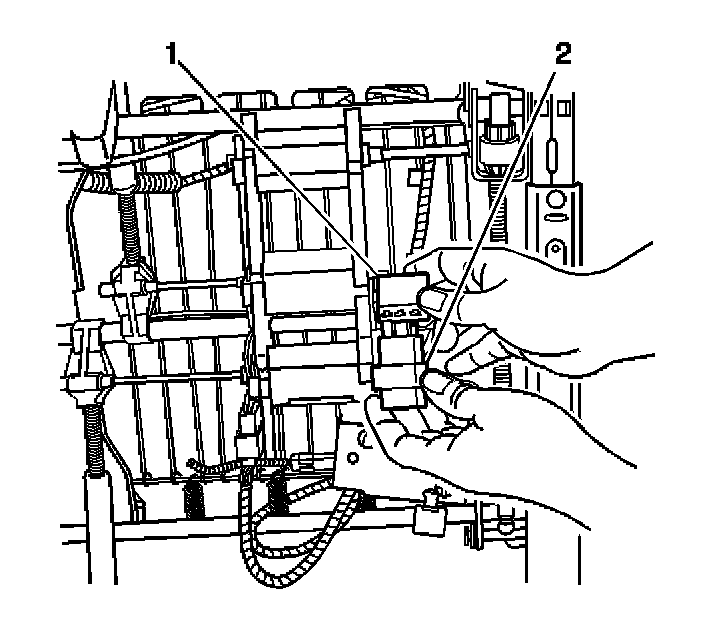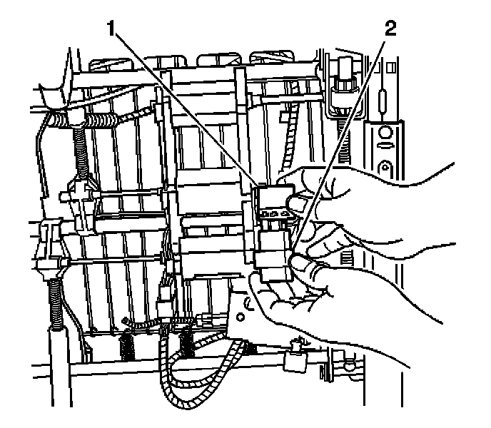 6. Disconnect the electrical harness connector (1) from the heater module (2).