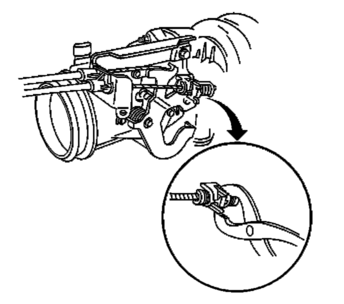 1. Remove the cruise control from the throttle body lever and the accelerator control cable bracket.