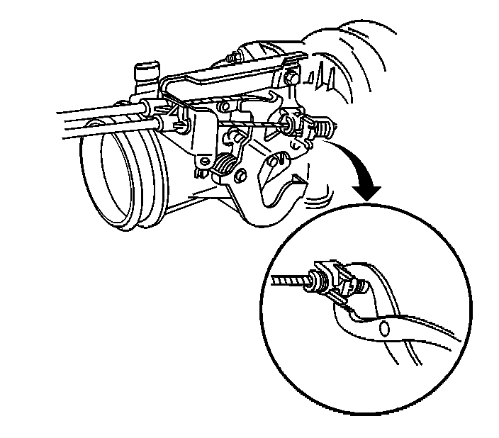 5. Install the cruise control cable to the throttle body lever and the accelerator control cable bracket.