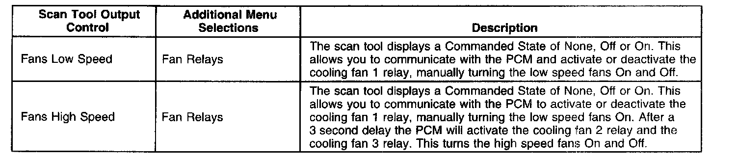 Powertrain Control Module (PCM) Scan Tool Output Controls: