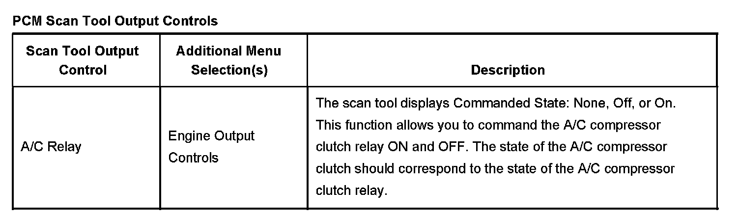 PCM Scan Tool Output Controls:
