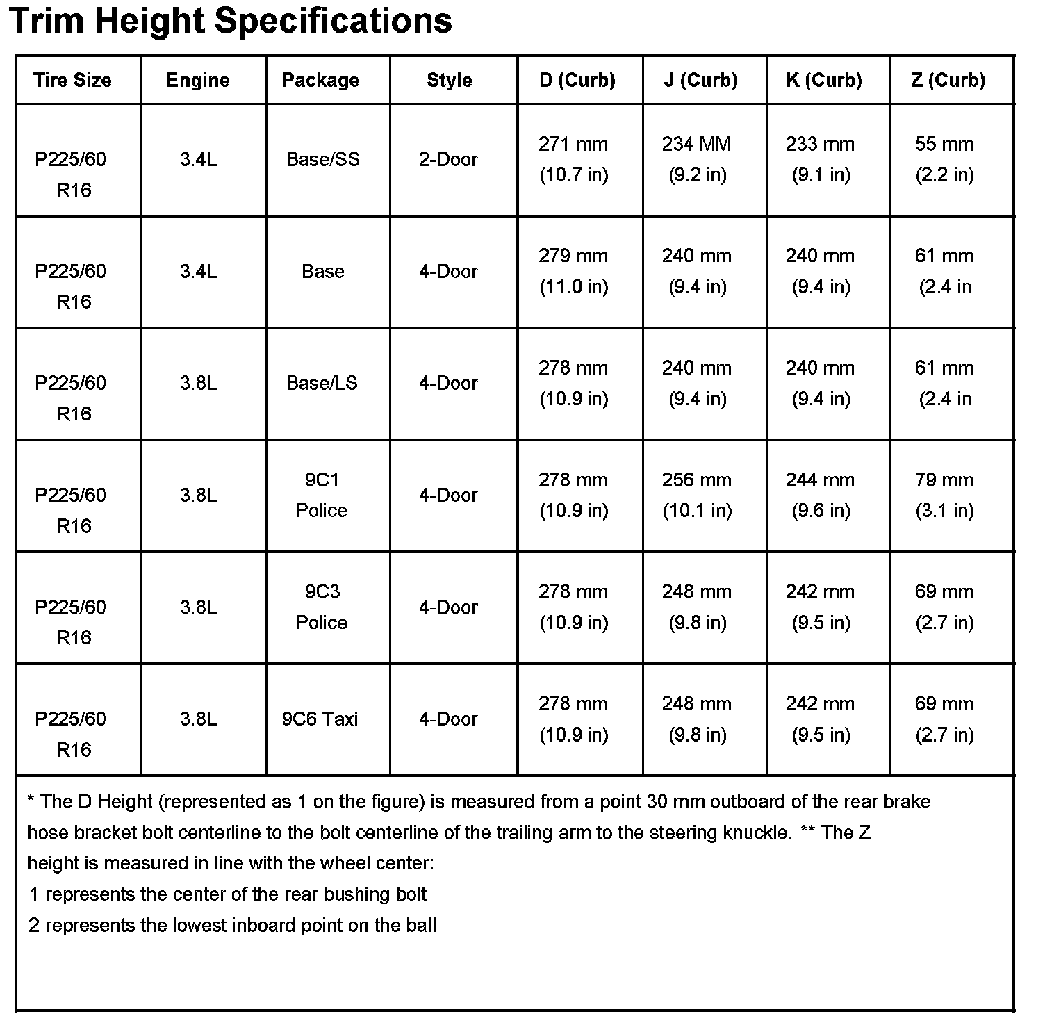 Ride/Trim Height Specifications