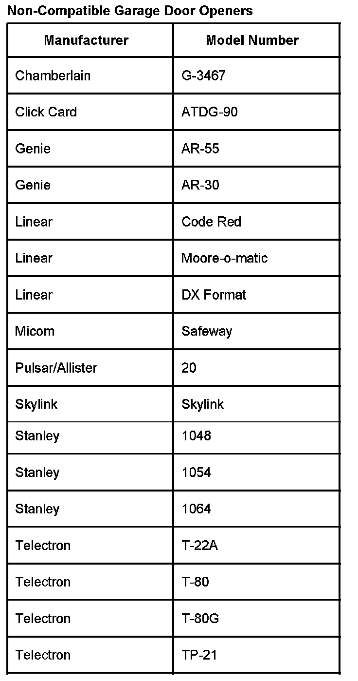Non-Compatible Garage Door Openers:
