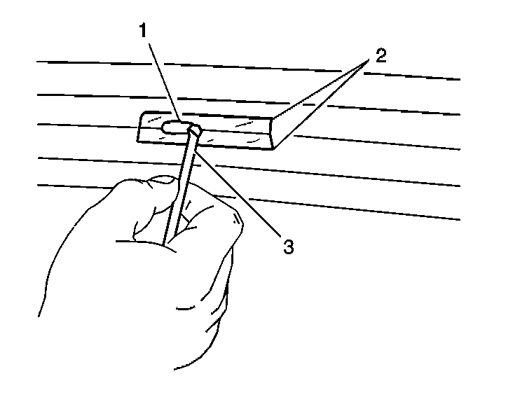 2. Use the brush (3) in order to spread the grid line repair material (1). Ensure that the repair material covers all of the areas of the cut out.