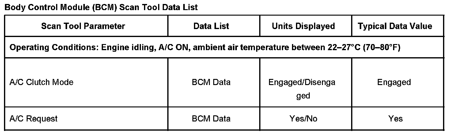 SCAN TOOL DATA LISTBody Control Module (BCM) Scan Tool Data List: