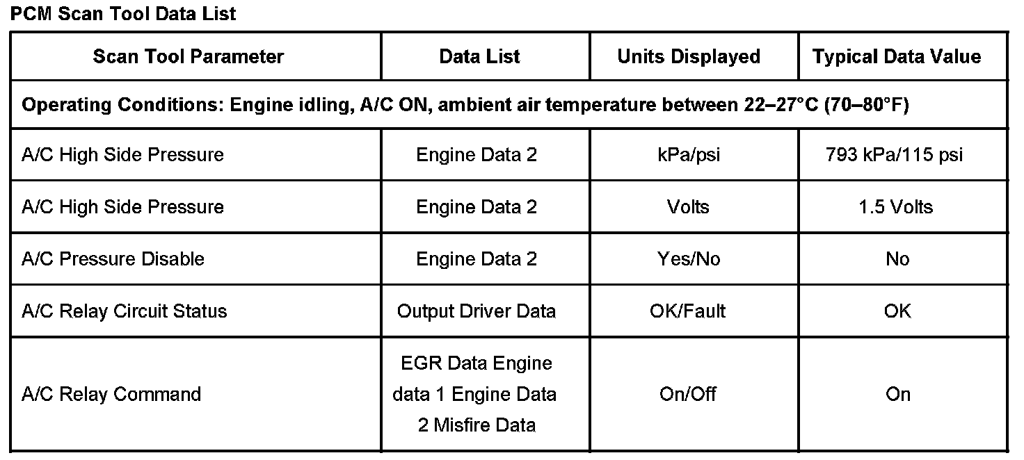The scan tool data values were taken from a known good vehicle under the following conditions: