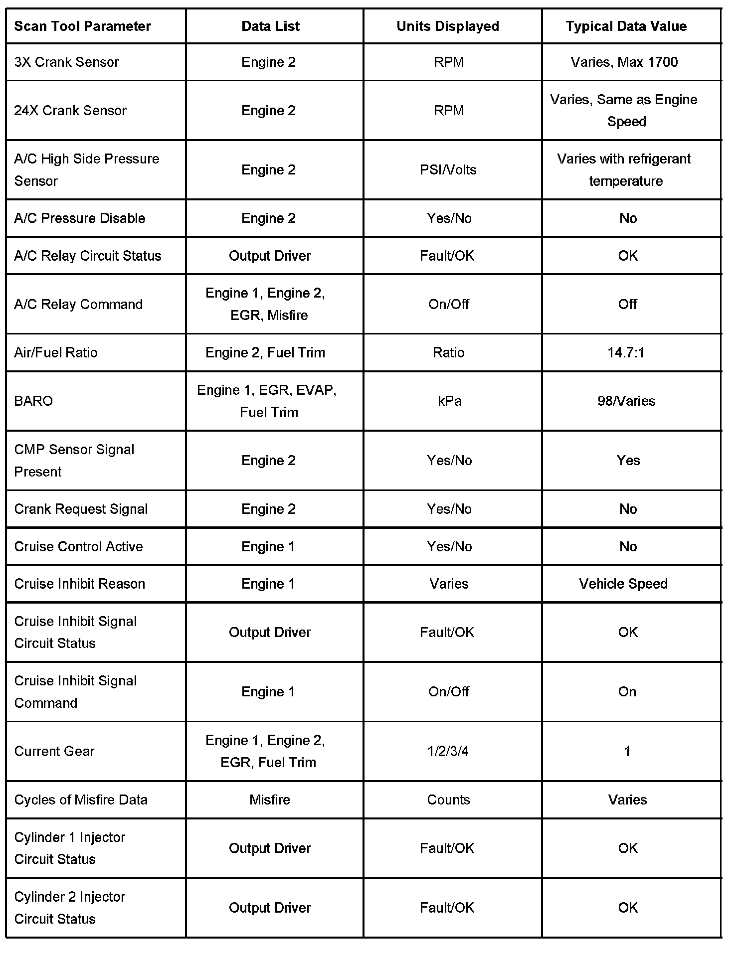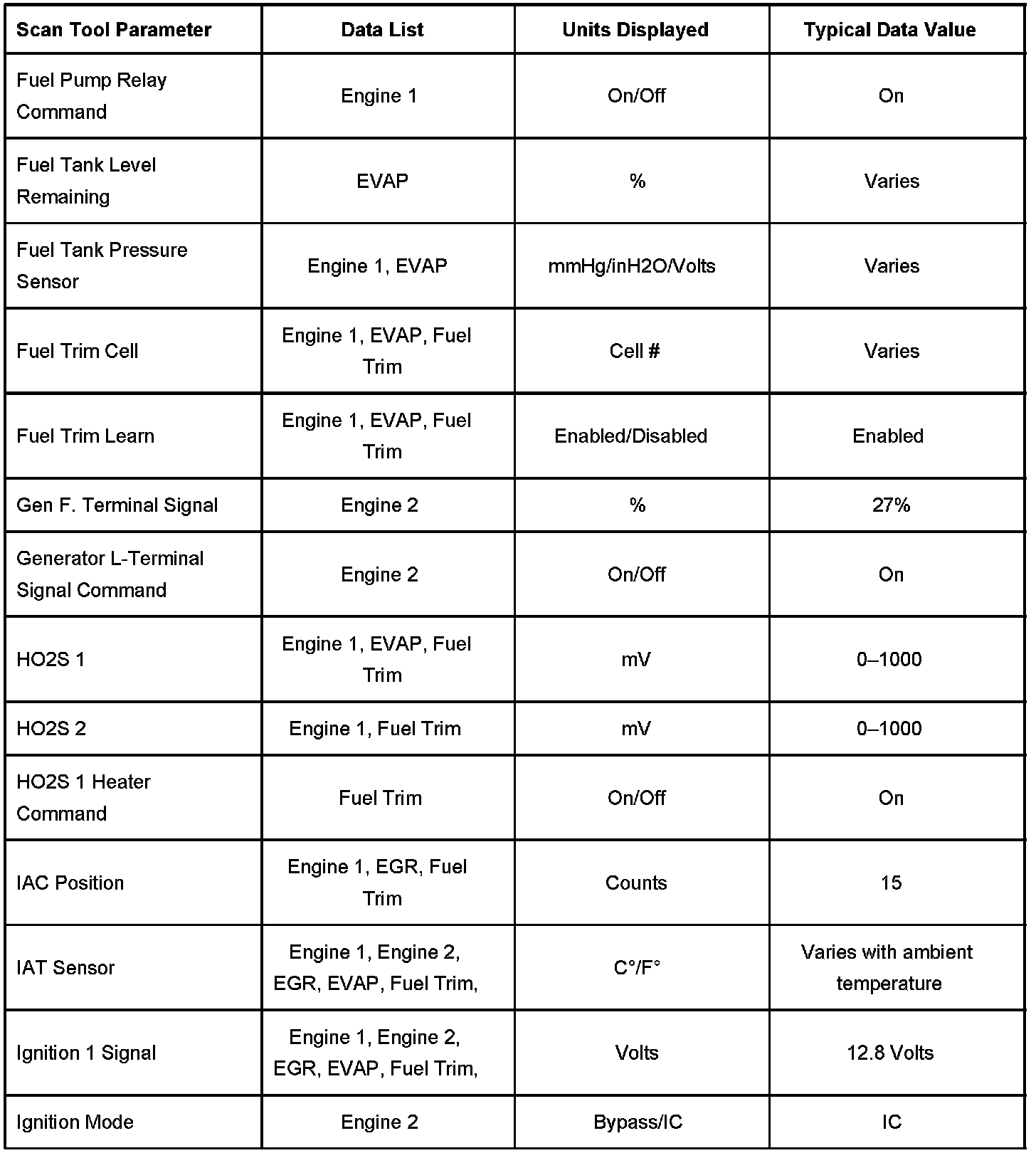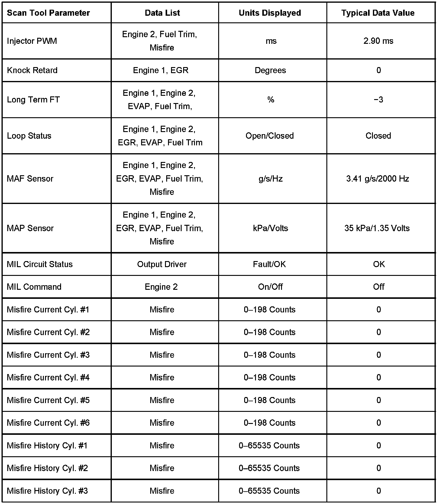 For scan tool parameter definitions, refer to Scan Tool Data Definitions. Scan Tool Data, Normal Values and Definitions