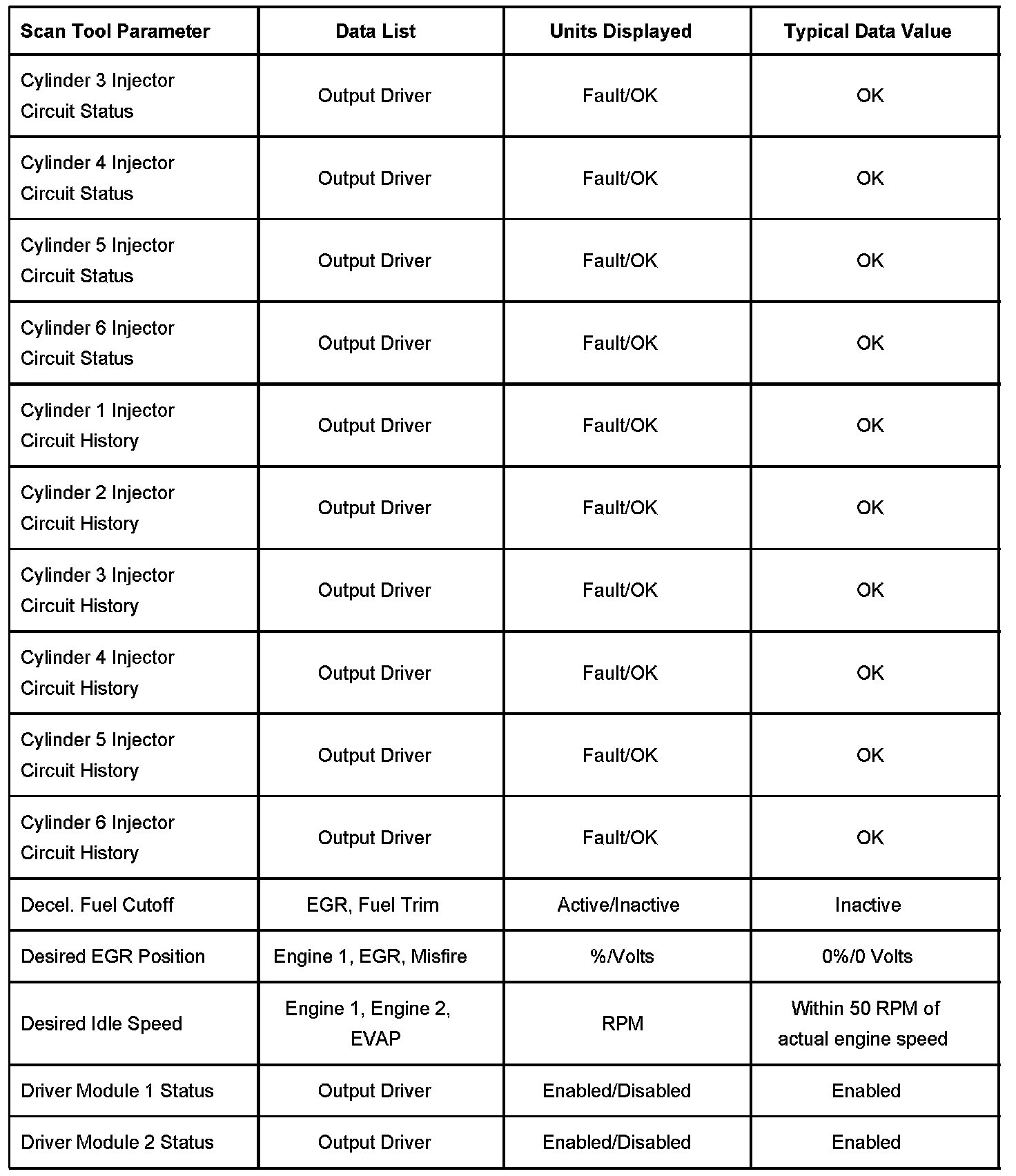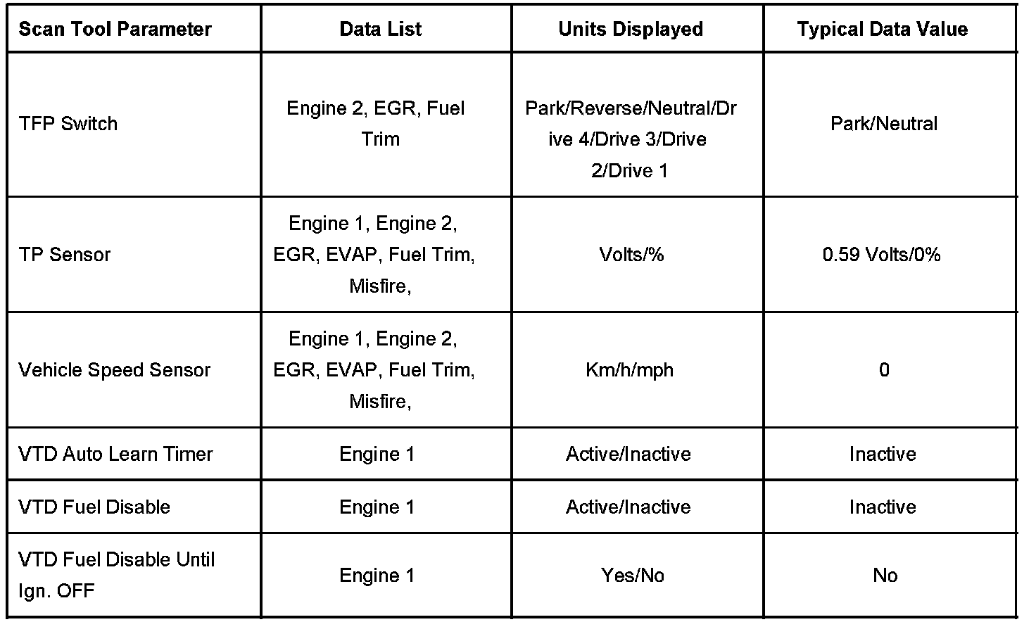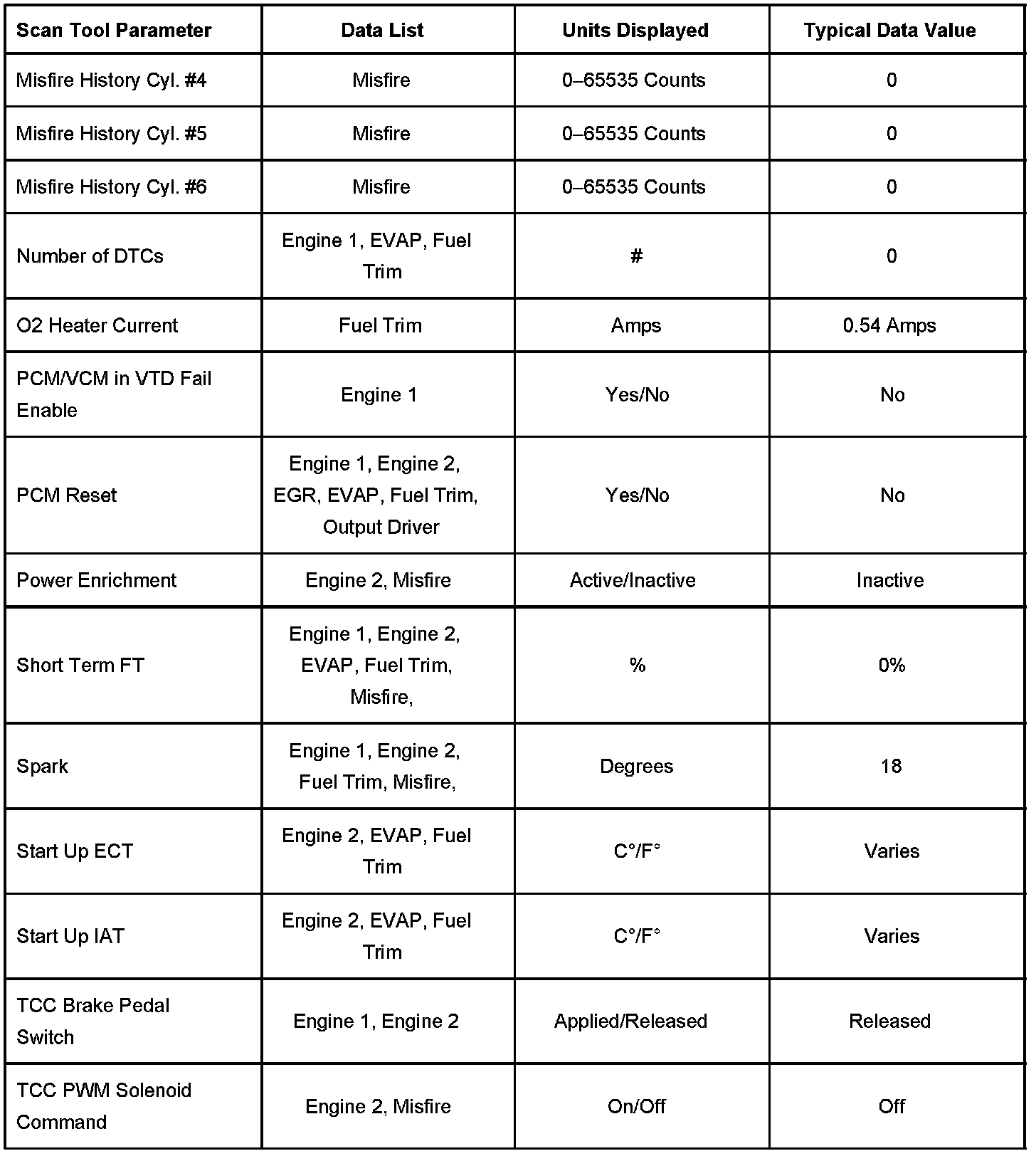 For scan tool parameter definitions, refer to Scan Tool Data Definitions. Scan Tool Data, Normal Values and Definitions