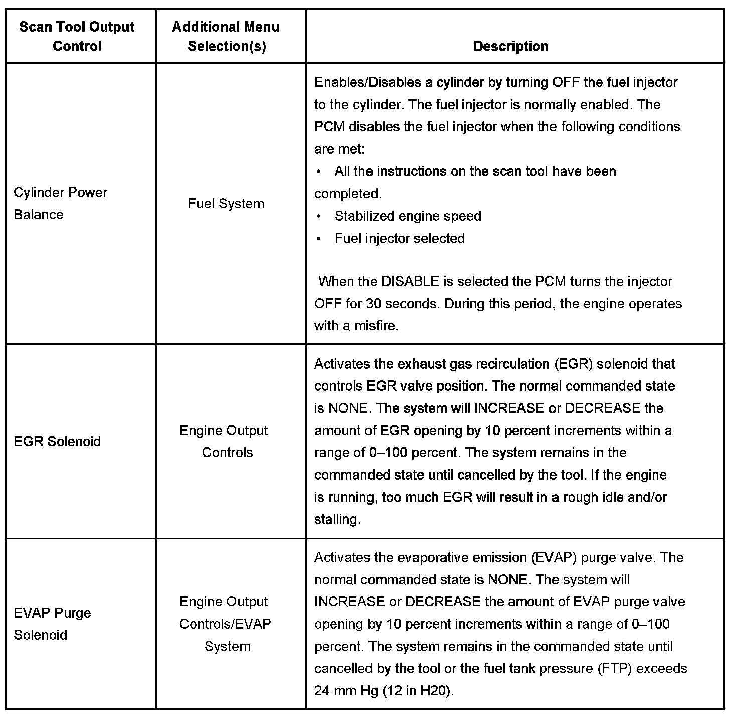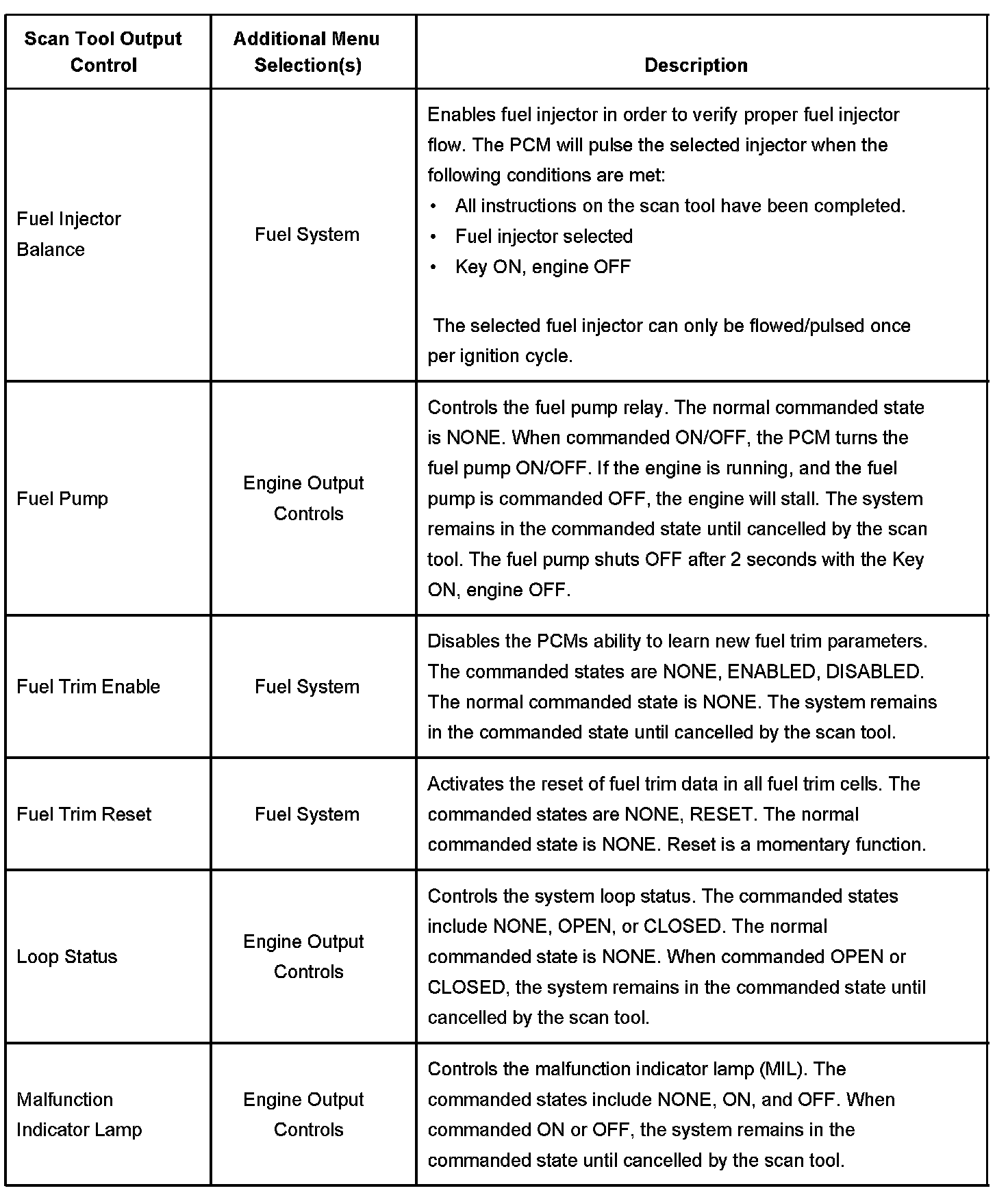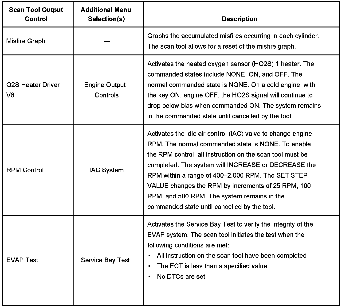 Scan Tool Output Controls