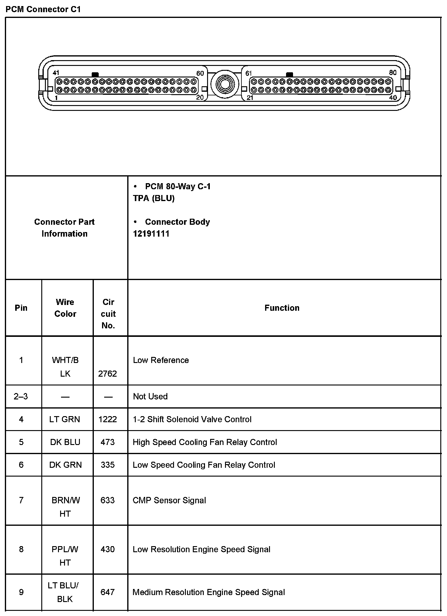 PCM Connector C1 Part 1:
