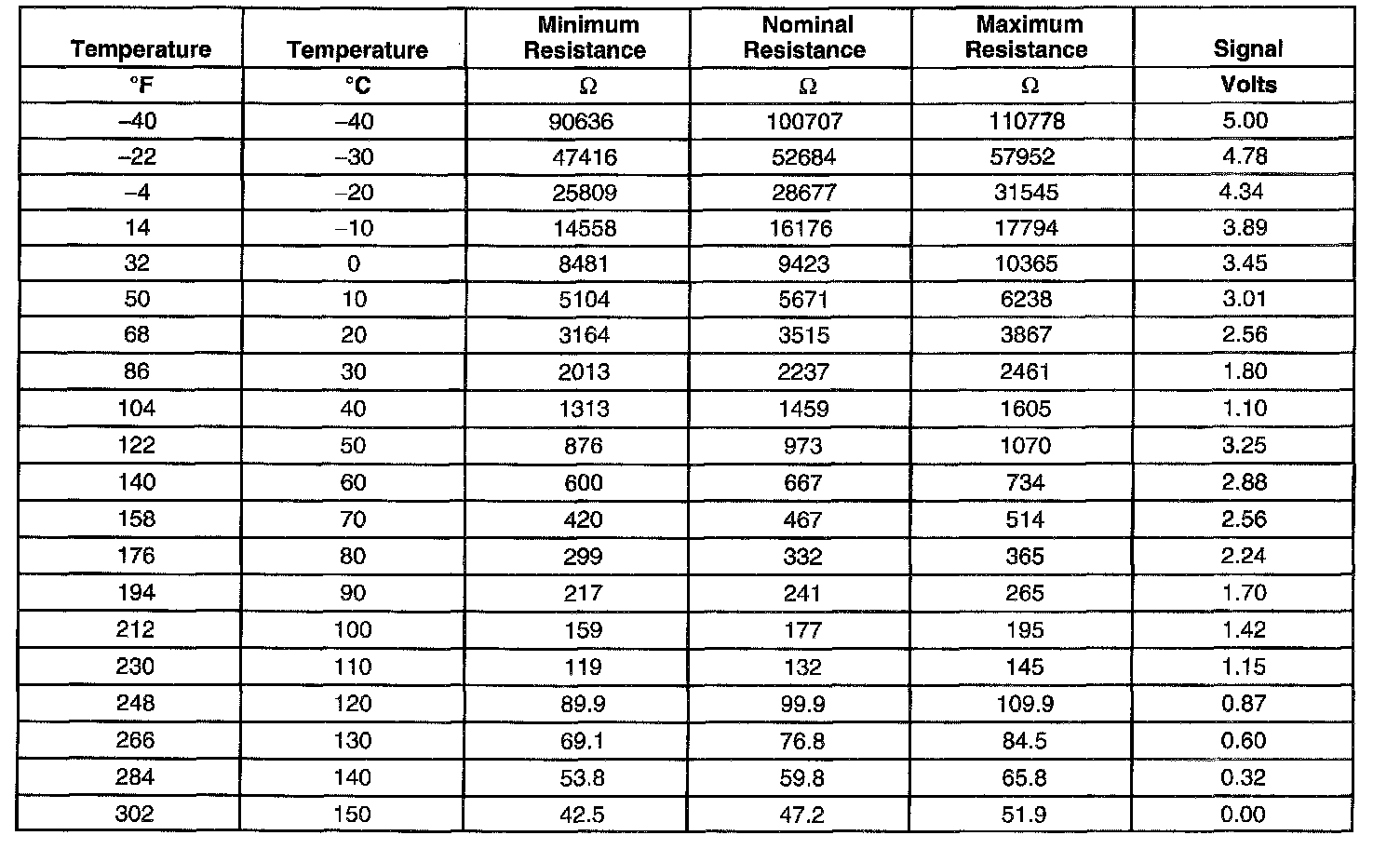 Transmission Fluid Temperature (TFT) Sensor Specifications: