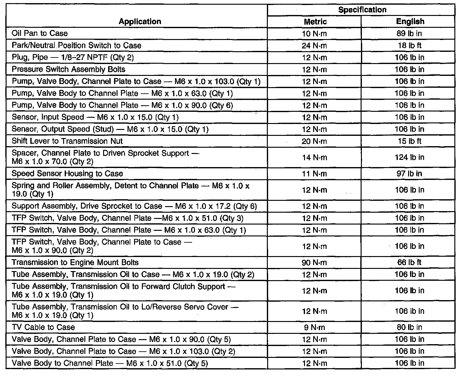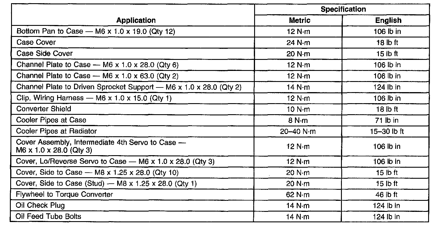 Fastener Tightening Specifications - Unit Repair