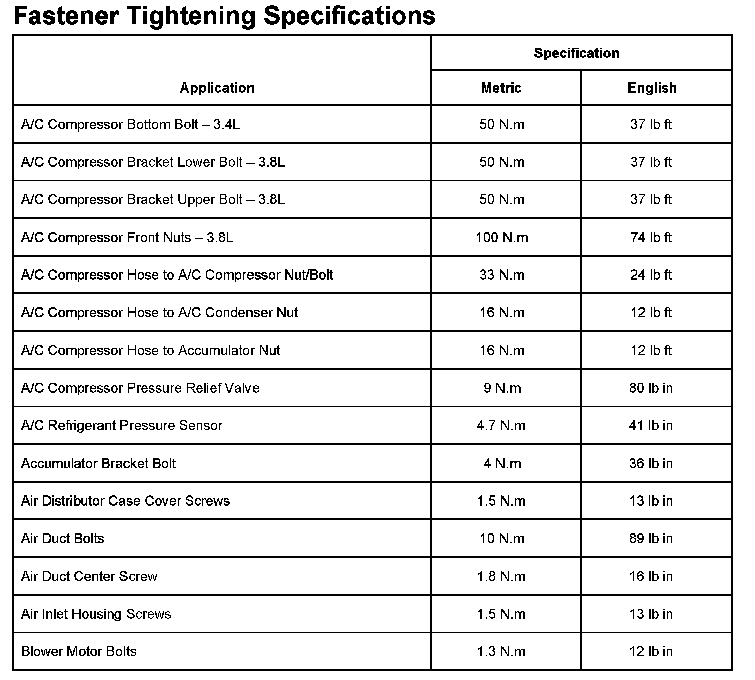 Fastener Tightening Specifications Part 1: