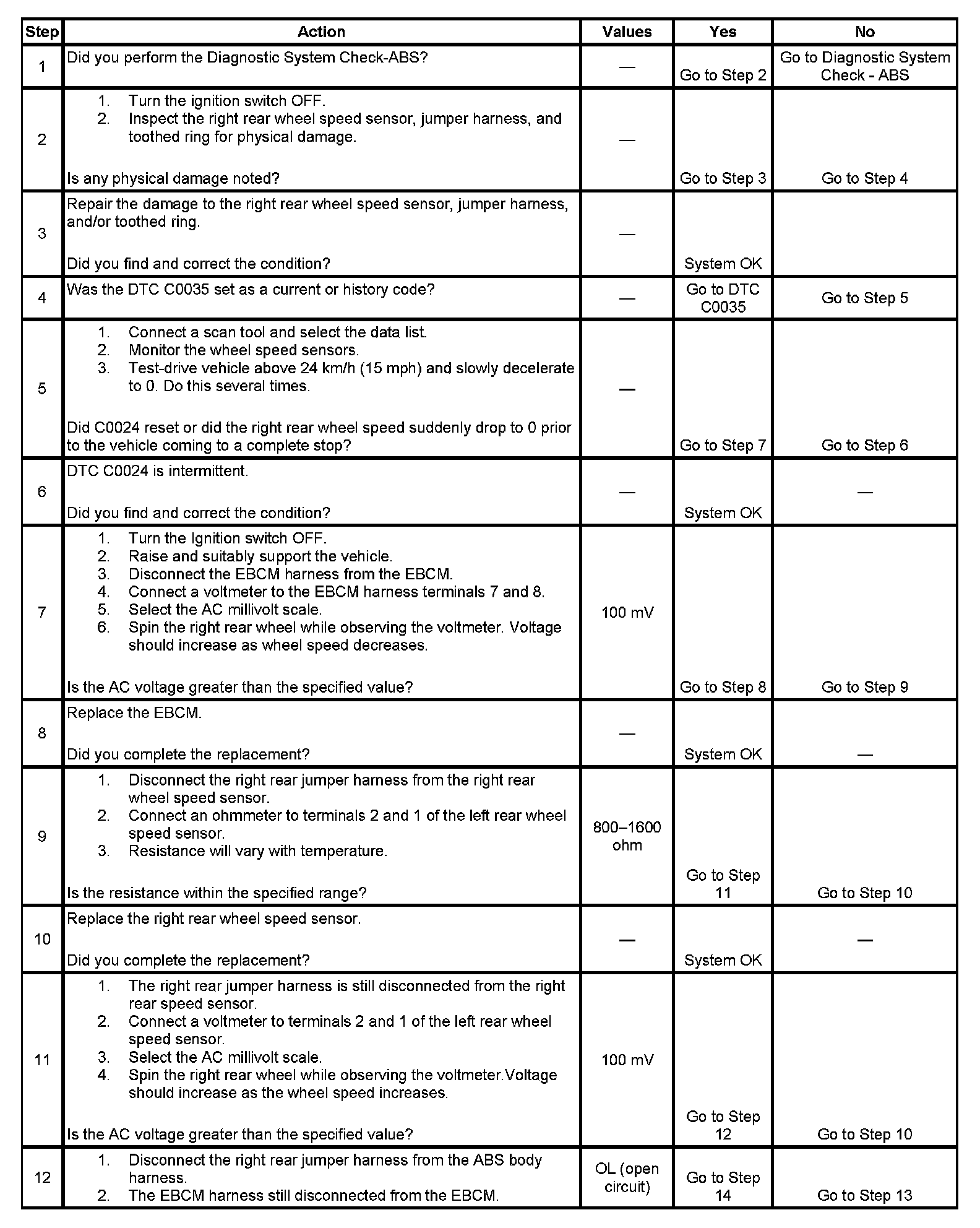 ^ If the conditions that set the DTC C0024 are no longer present, the DTC may be cleared by using the proper scan tool.
