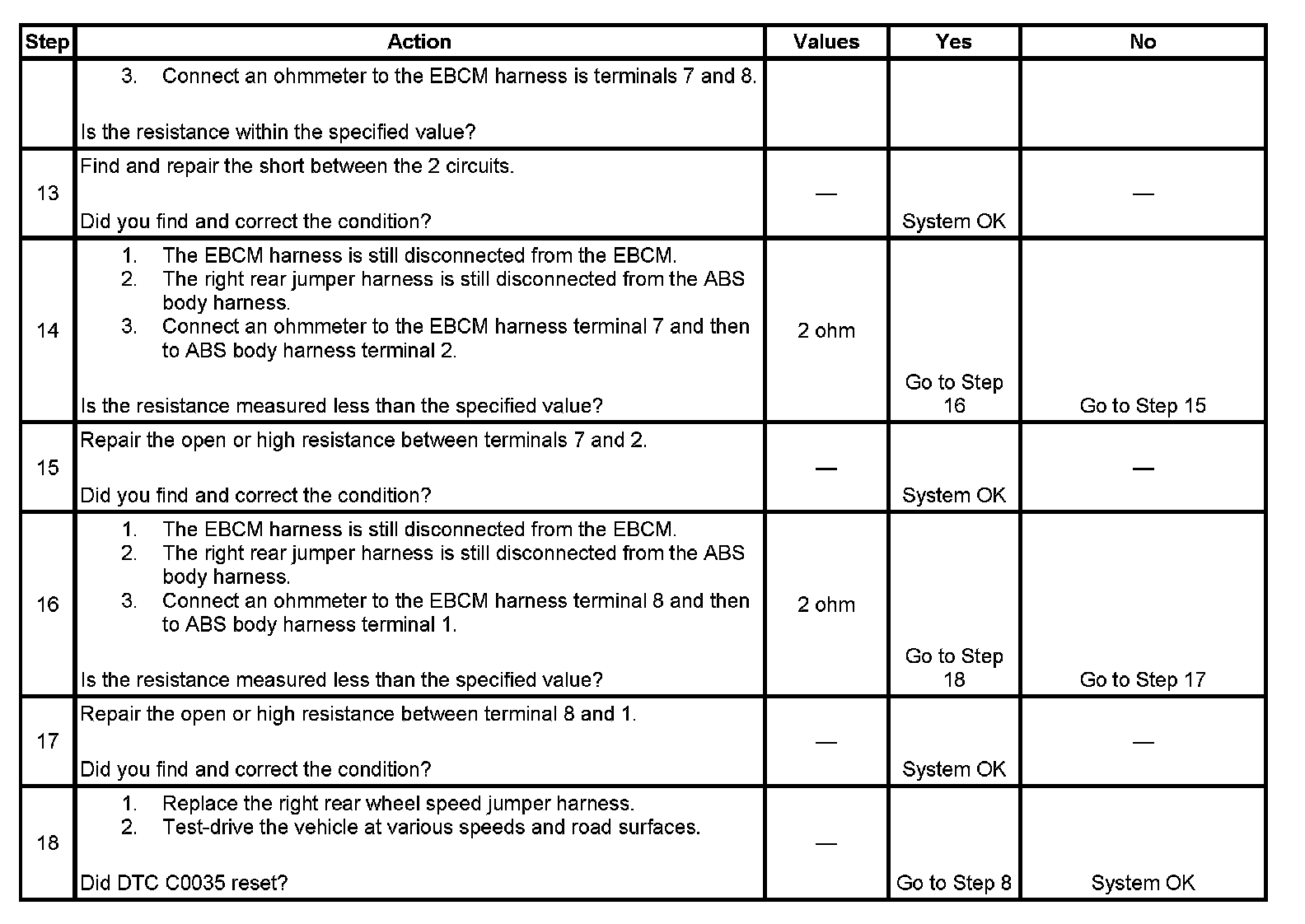 ^ DTC 0032, C0033, C0034, or C0035 not current