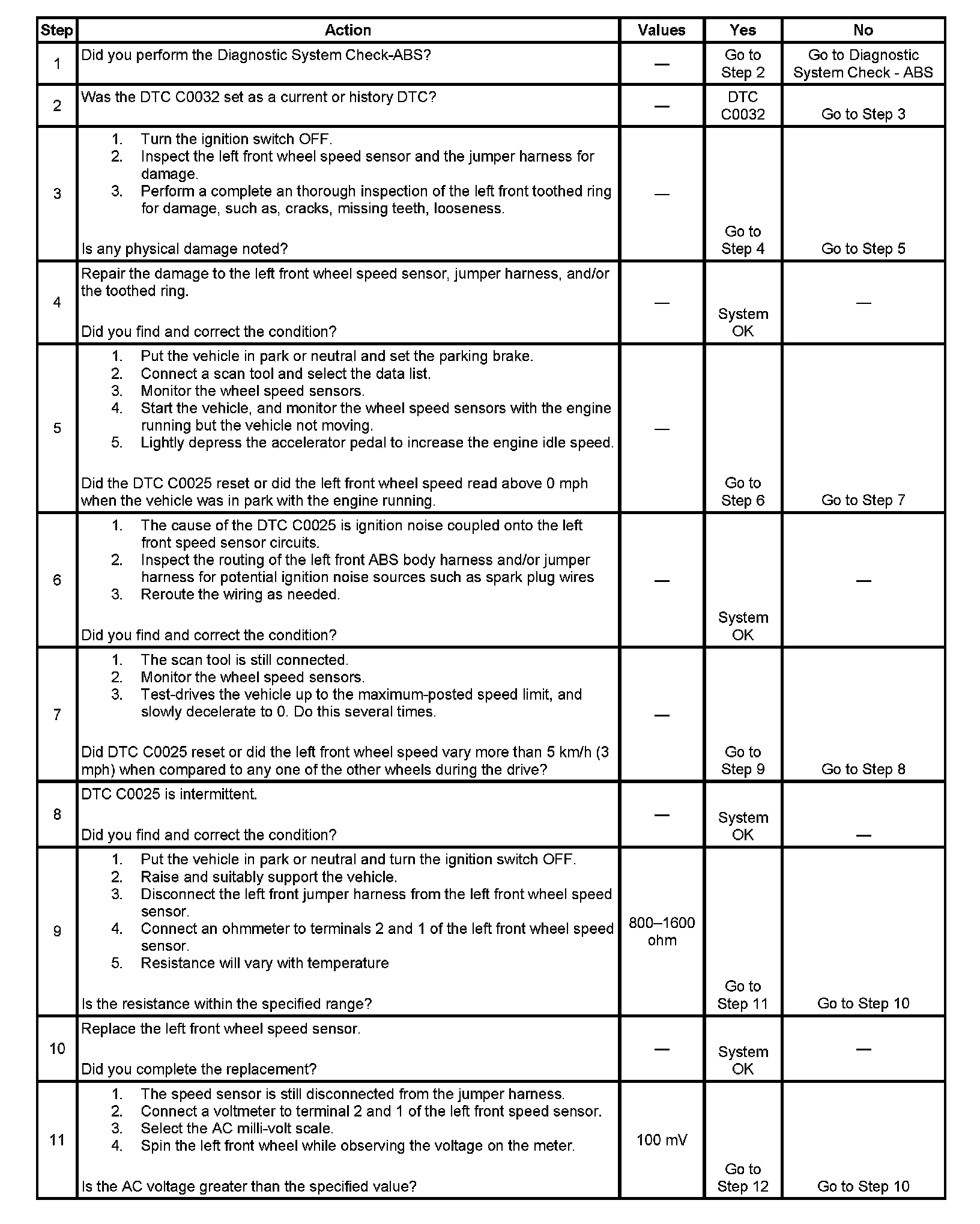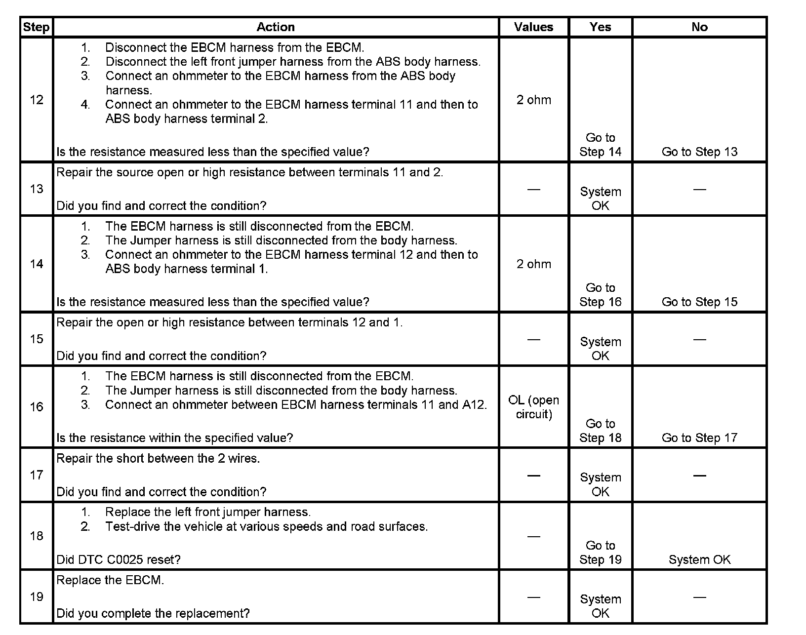 Failure to perform the previous steps carefully and fully can result in misdiagnosis, unnecessary component replacement, and reoccurrence of DTC C0025.