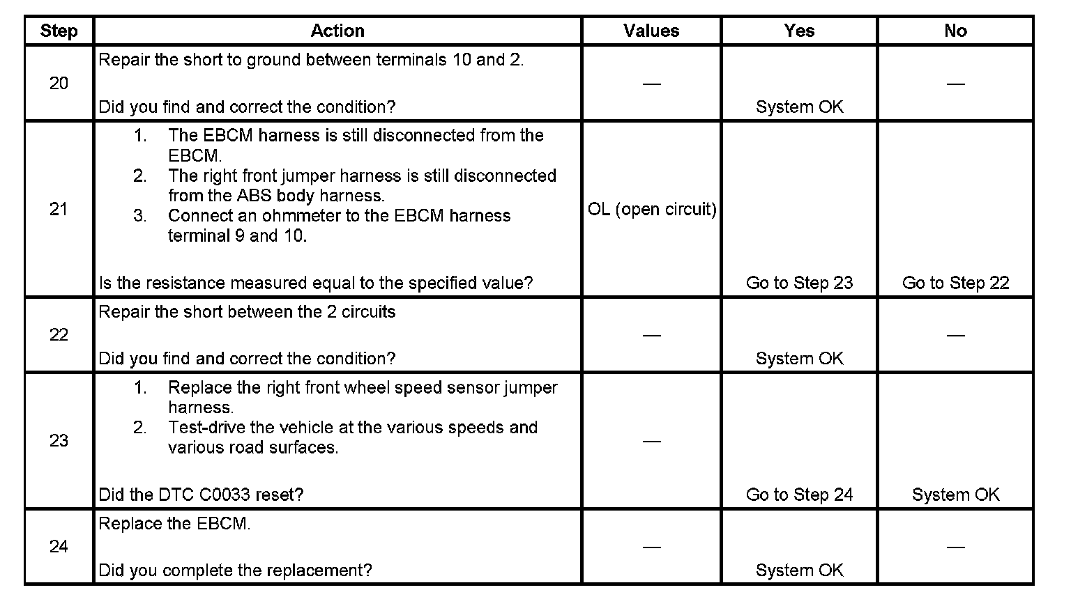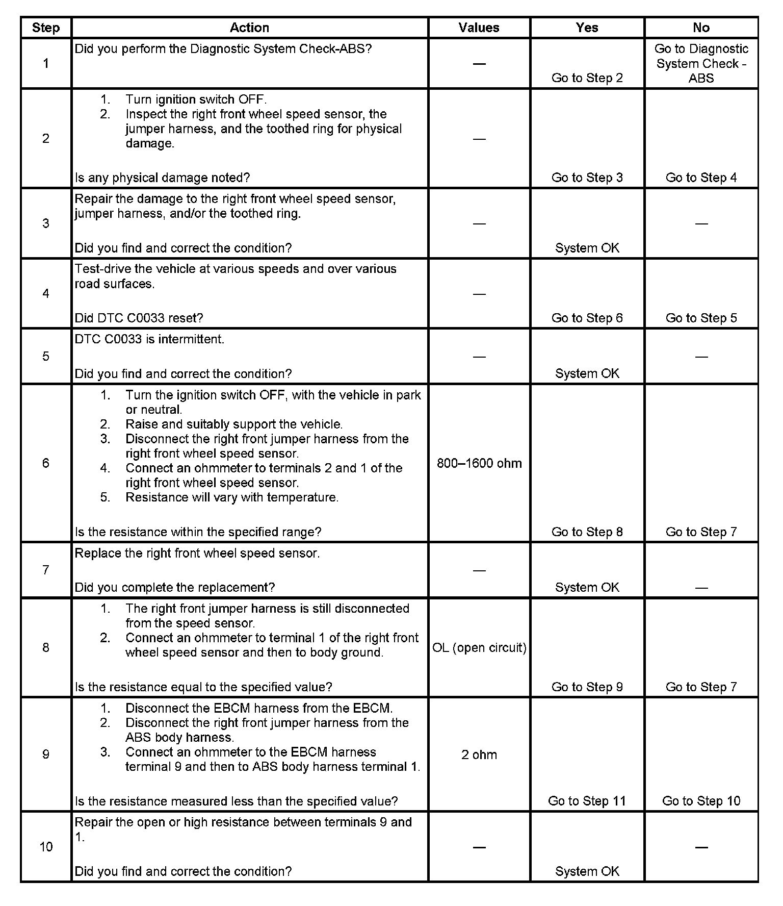 Failure to perform the previous steps carefully and fully can result in misdiagnosis, unnecessary component replacement, and reoccurrence of DTC C0033.