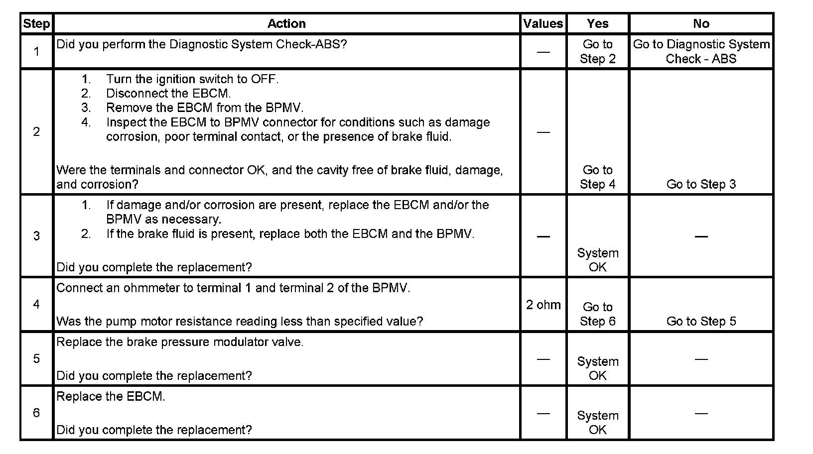 The pump motor is contained within the Brake Pressure Modulator Valve (BPMV). The pump motor ground is supplied through terminal 15 of the Electronic Brake Control Module (EBCM).
