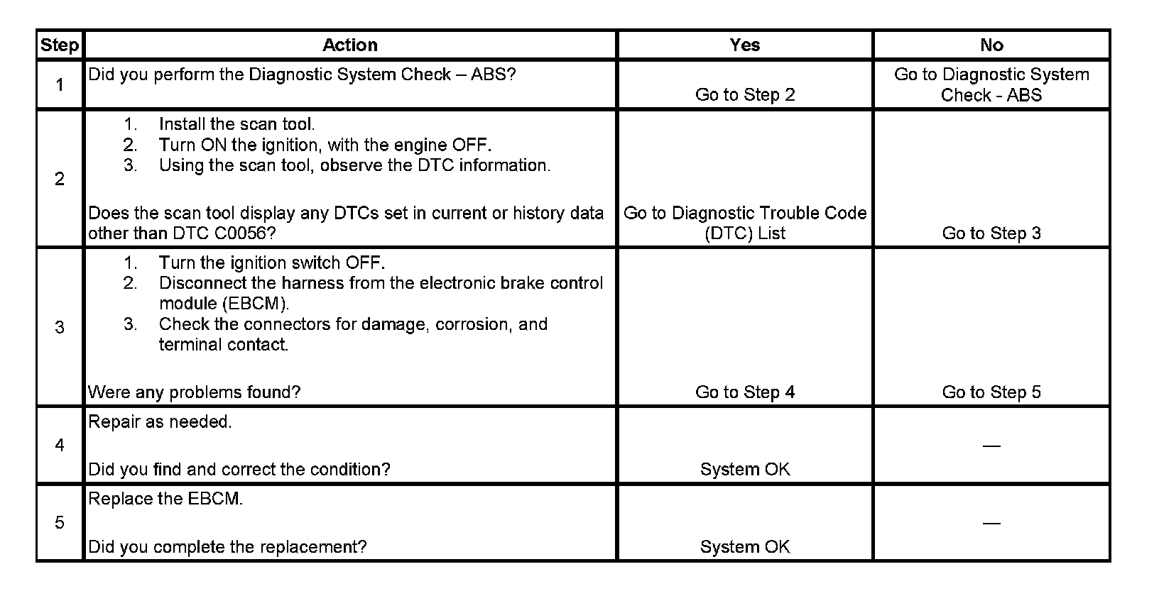 ^ Possible cause for DTC C0056 to set is an internal relay problem within the EBCM.