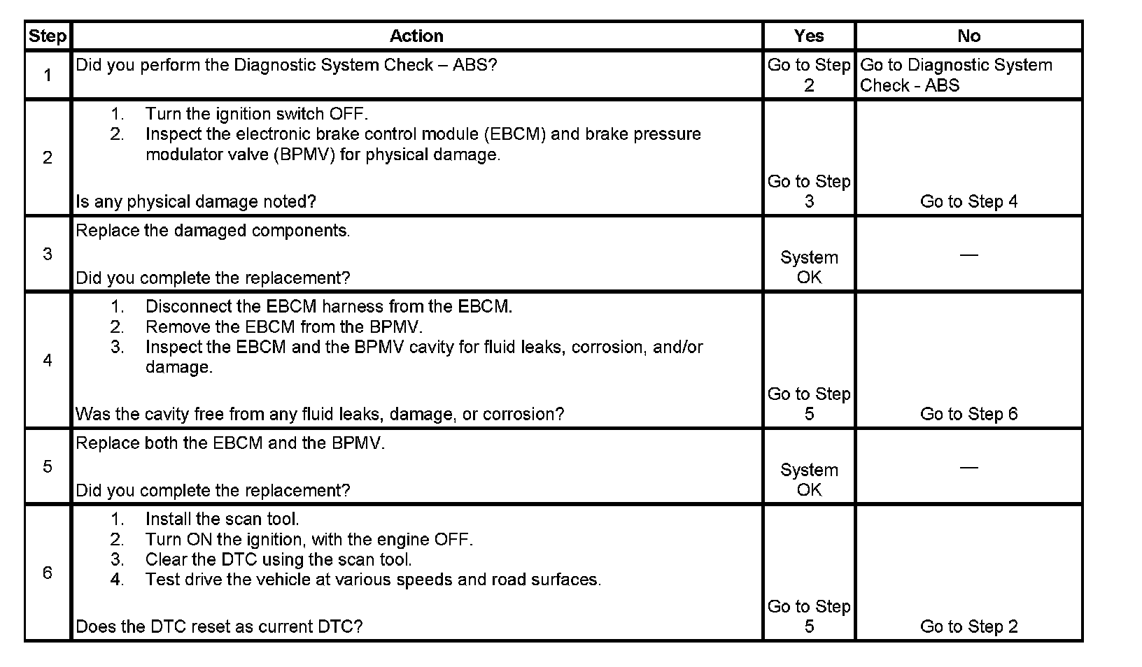 Since the solenoid coils are an integral part of the EBCM, any one of the DTCs settings will usually indicate an internal fault to the EBCM.