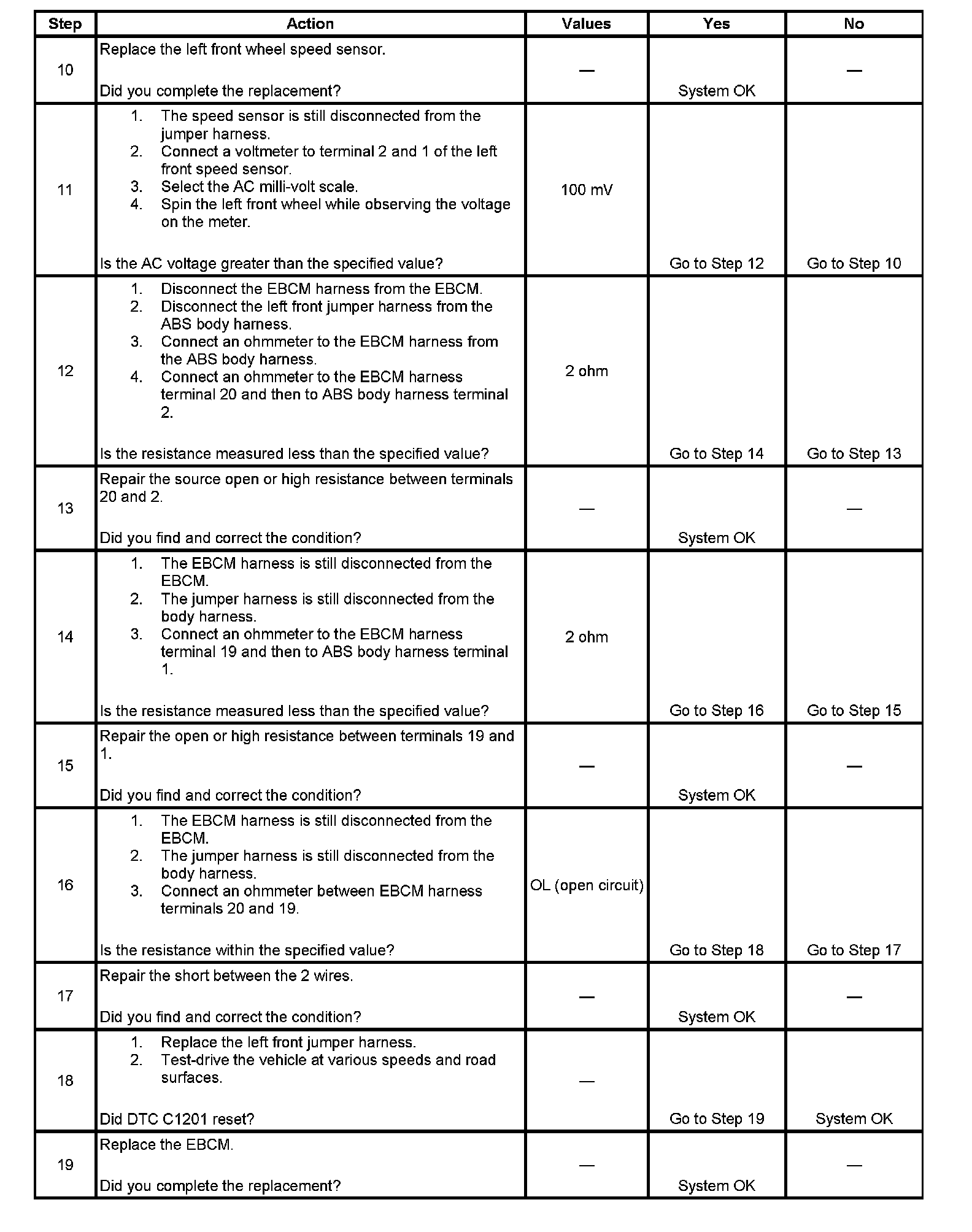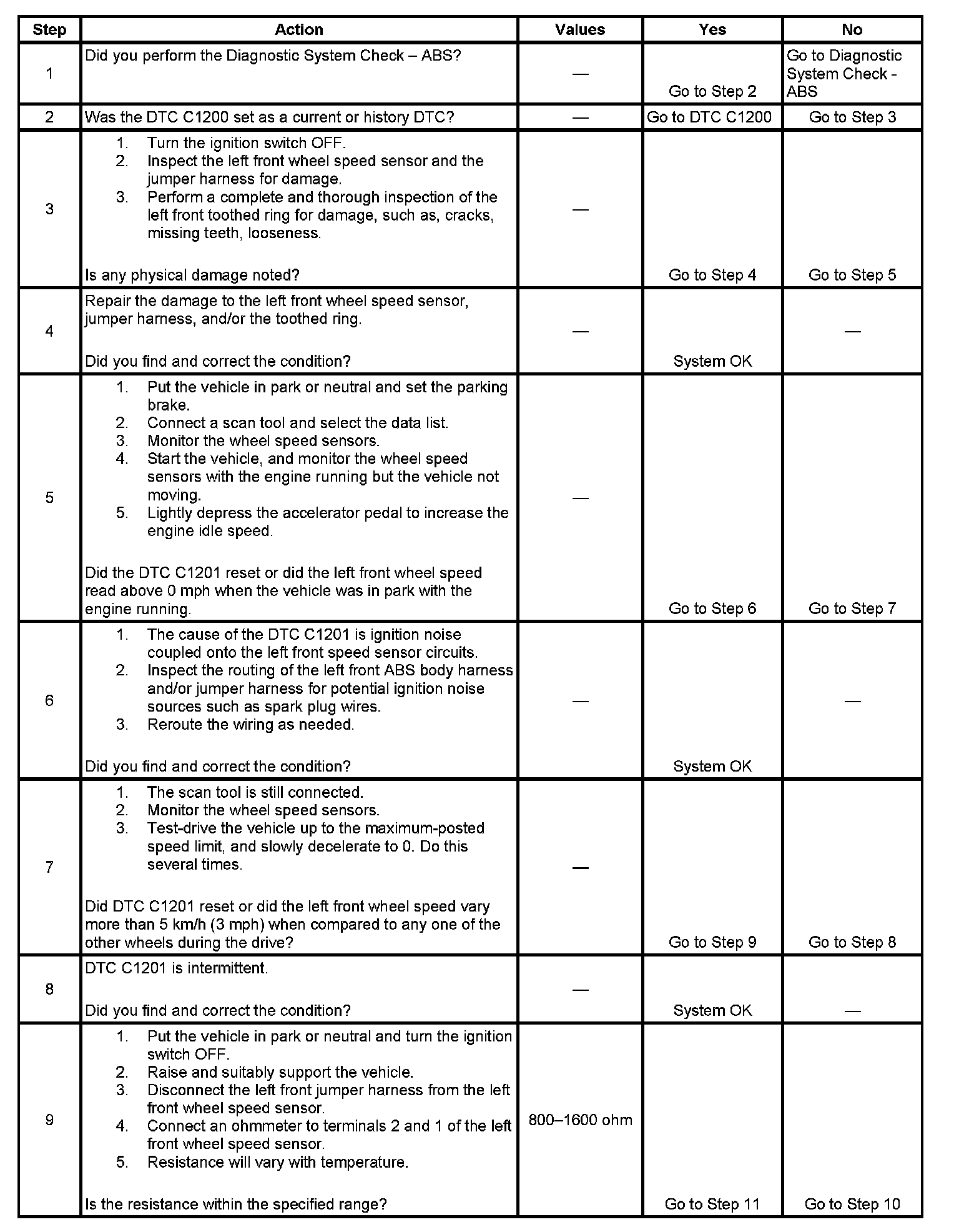 Failure to perform the previous steps carefully and fully can result in misdiagnosis, unnecessary component replacement, and reoccurrence of DTC C1201.