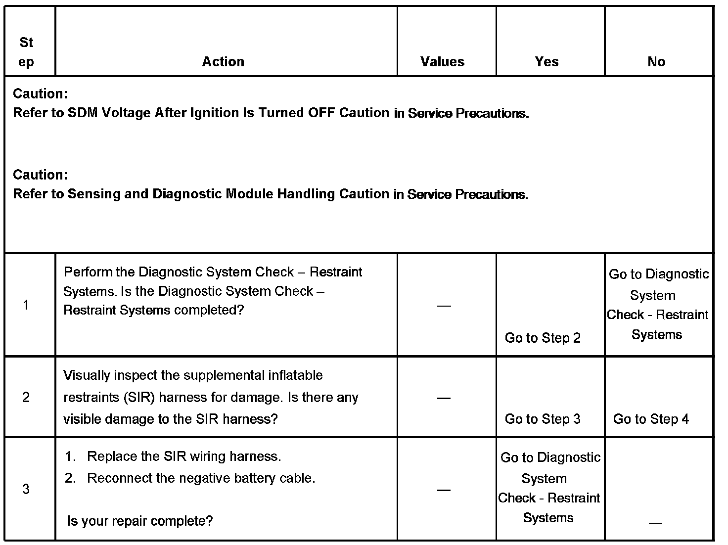 When the ignition switch is turned to ON, the sensing and diagnostic module (SDM) will perform a turn-on test to diagnose critical malfunctions within the SDM itself.