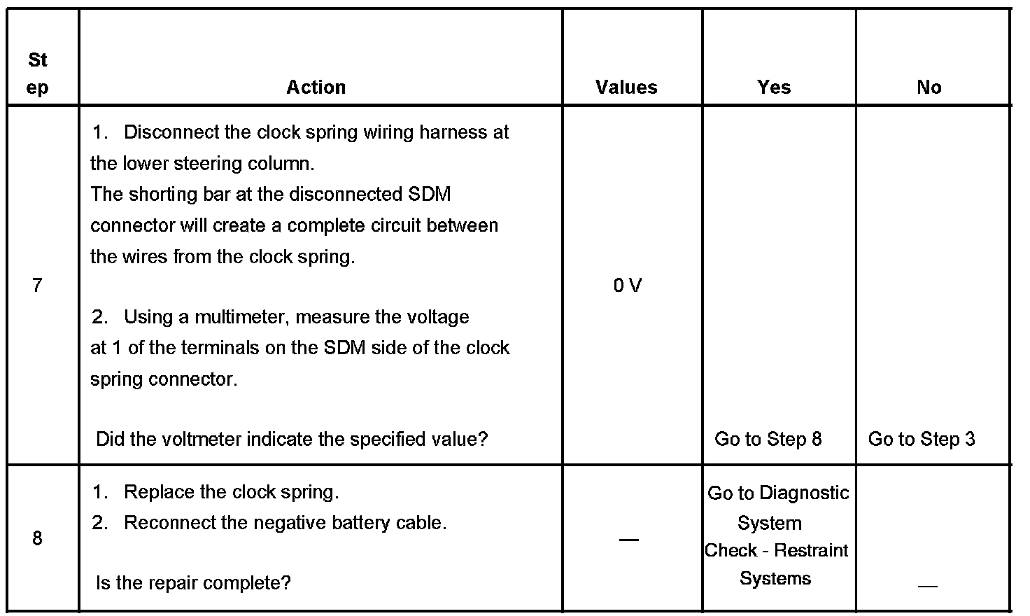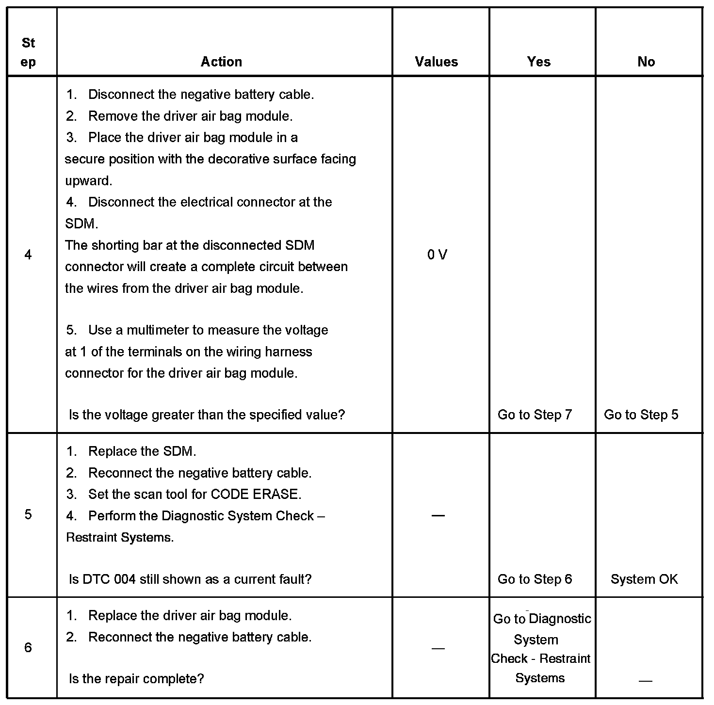 The test ignition and deployment loop voltages are measured to ensure that they are within their normal voltage ranges. The SDM monitors the voltages at the driver low and the passenger low to detect shorts to ground or voltage in the deploy loops.