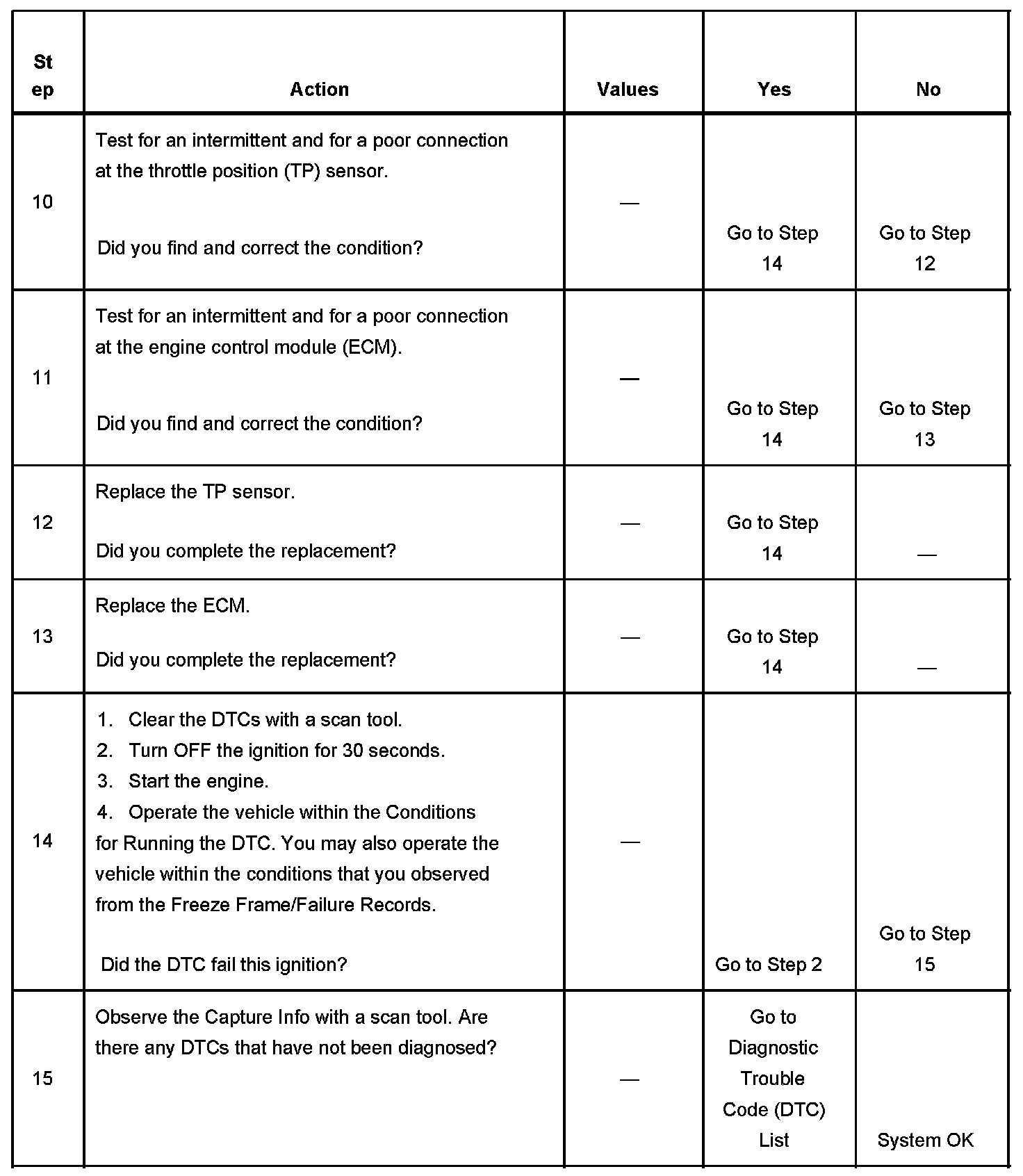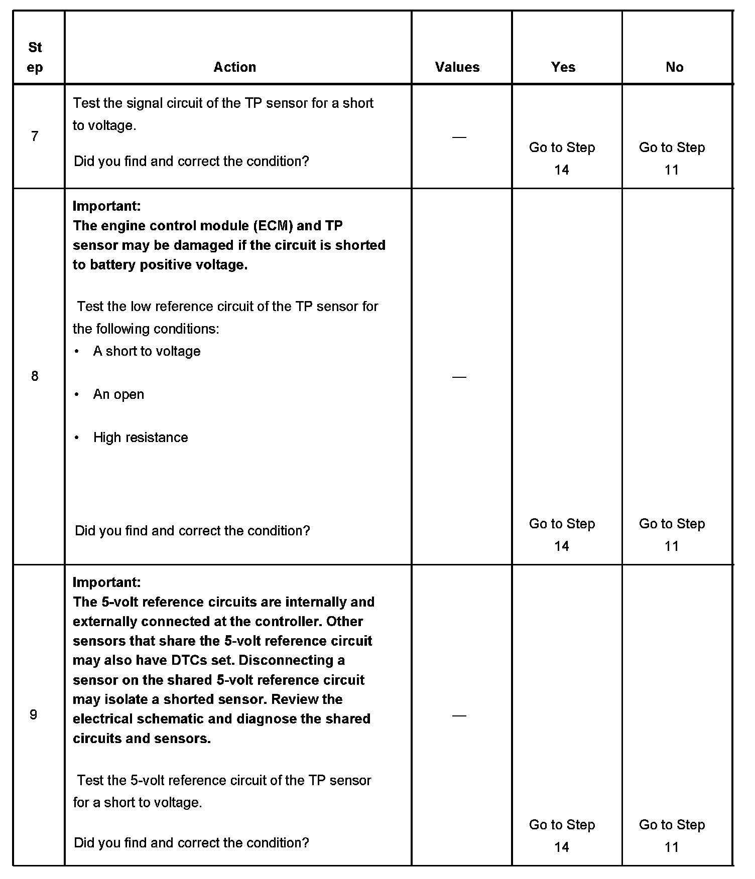 IMPORTANT: The scan tool displays a voltage near 0.0 volts. Do not use the scan tool voltage parameter to determine if there is a TP sensor condition.