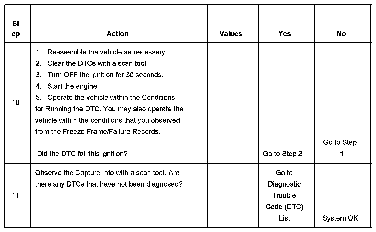 - A current DTC, Last Test Failed, clears when the diagnostic runs and passes.