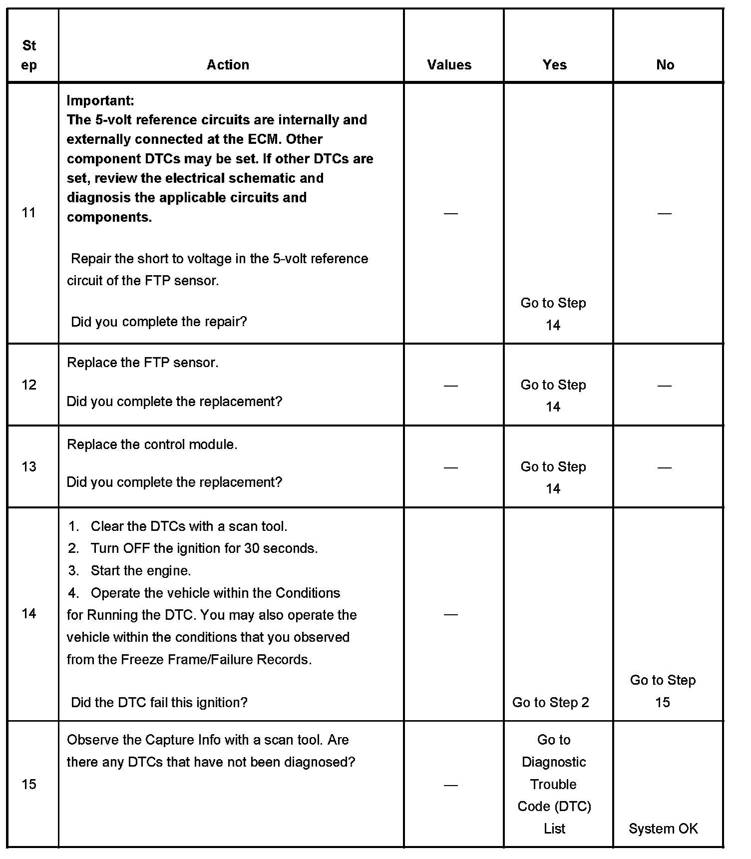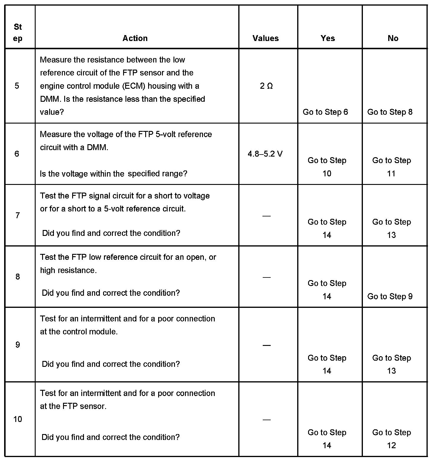 6. This step tests the 5-volt reference circuit of the FTP sensor.
