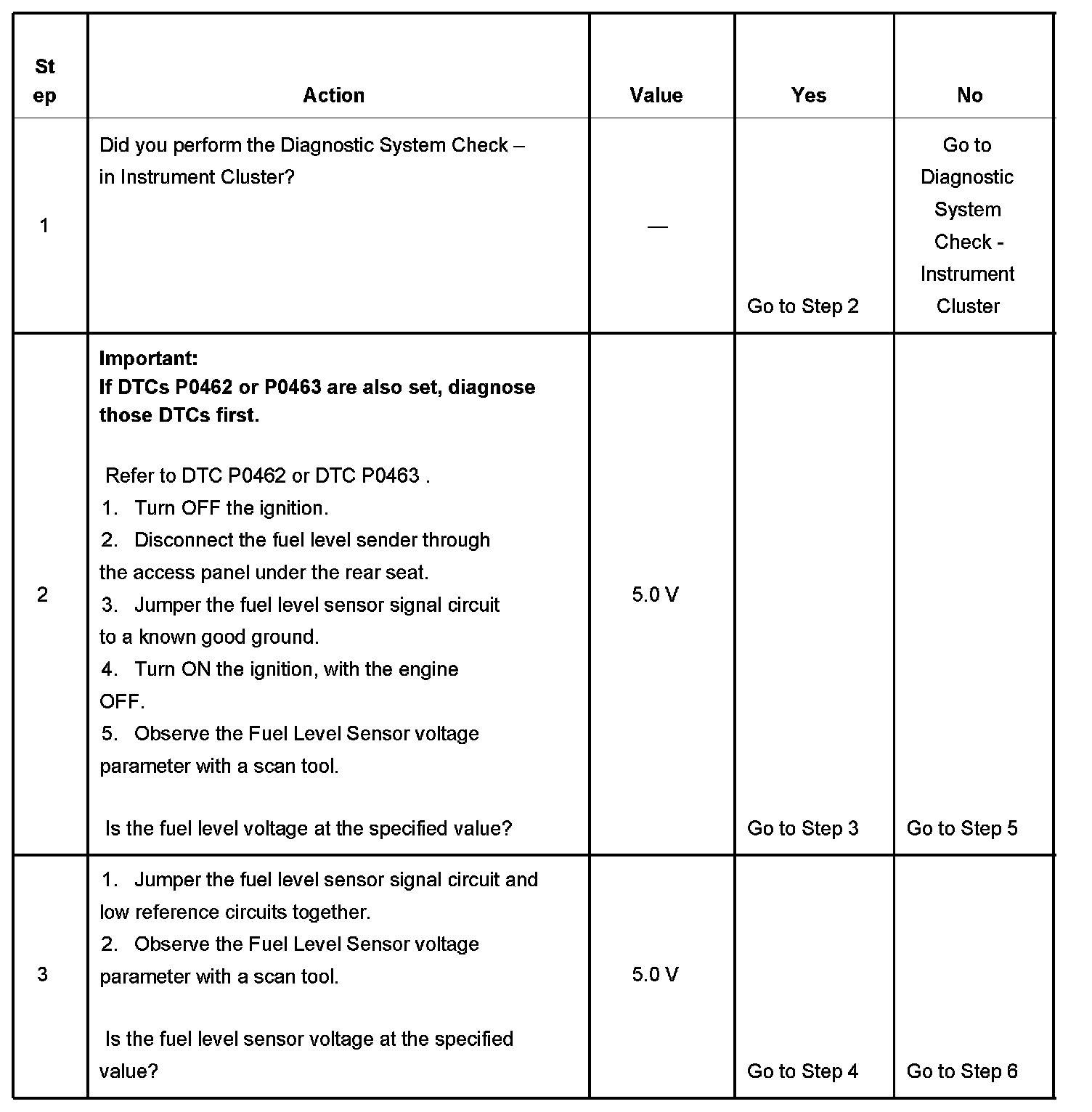 3. This step determines if the fuel level sensor signal and ground circuits are OK.