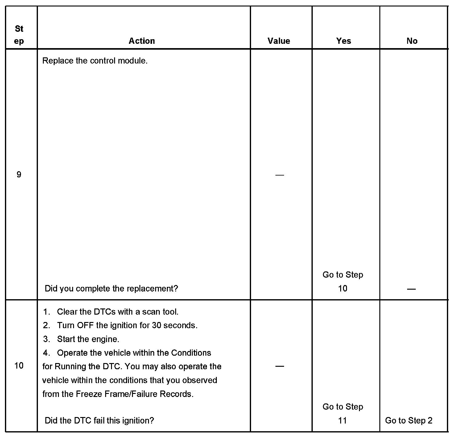 - A current DTC, Last Test Failed, clears when the diagnostic runs and passes.